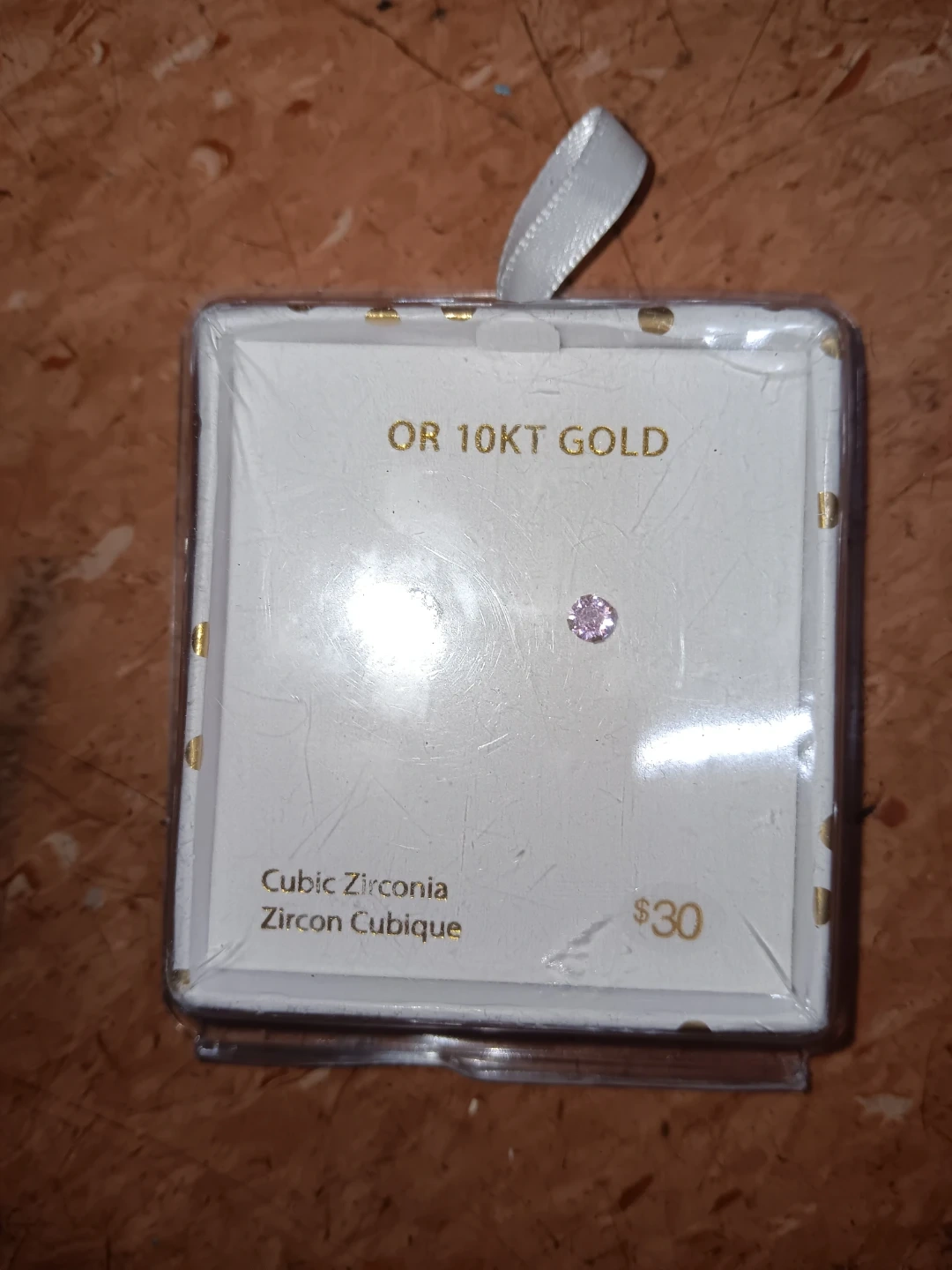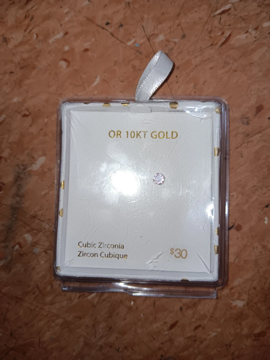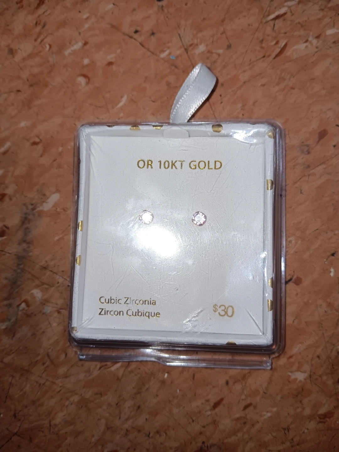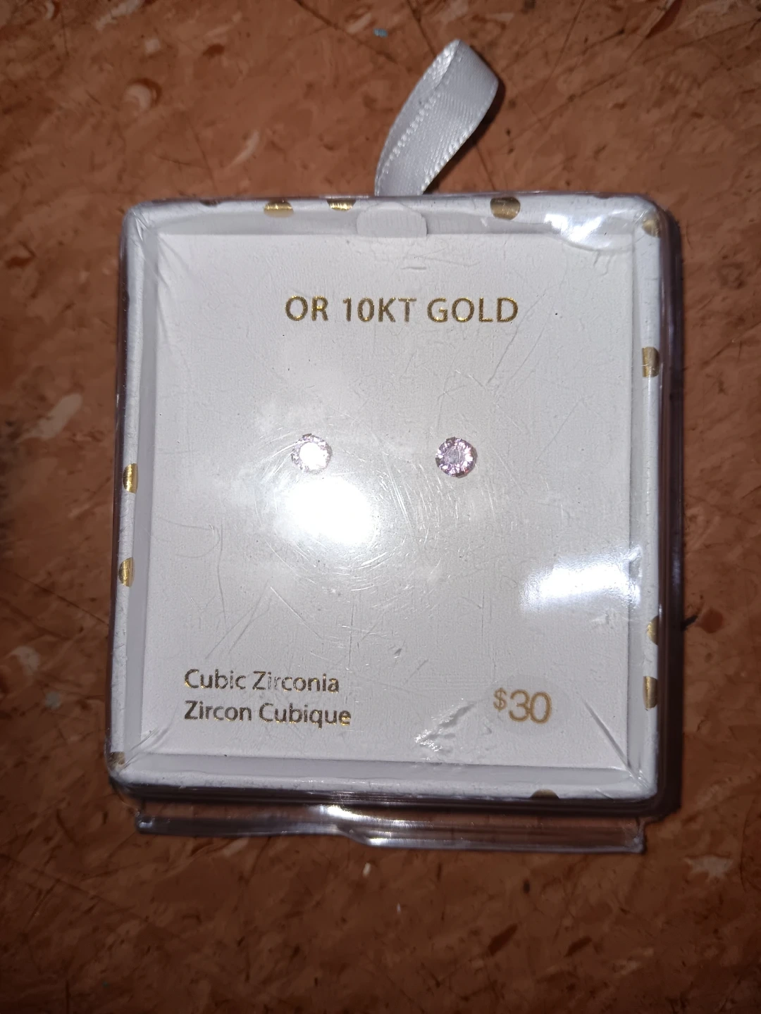 These stud earrings feature cubic zirconia stones set in 10K gold. The stones are small and delicate, perfect for everyday wear. They come packaged and ready for gifting!