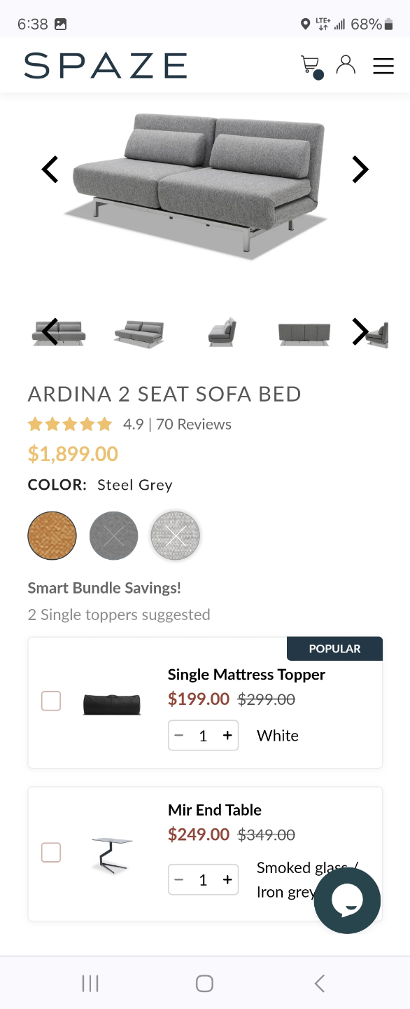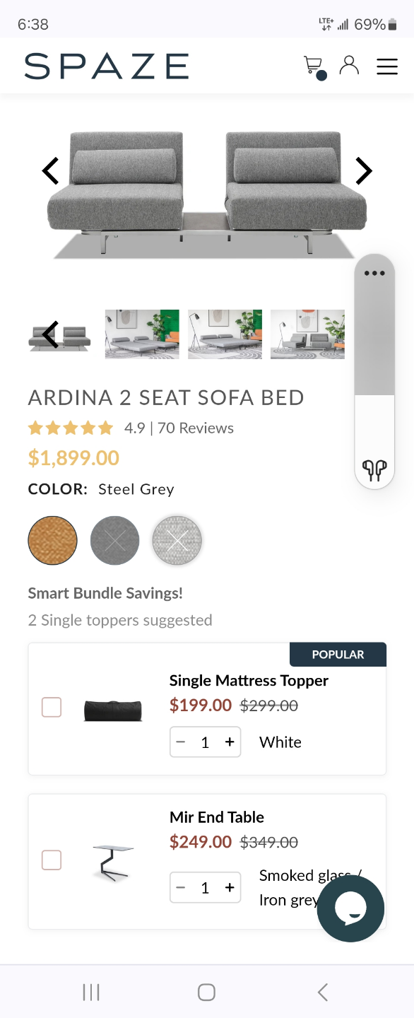 Modern Spaze 2-Seat Sofa Bed - Steel Grey