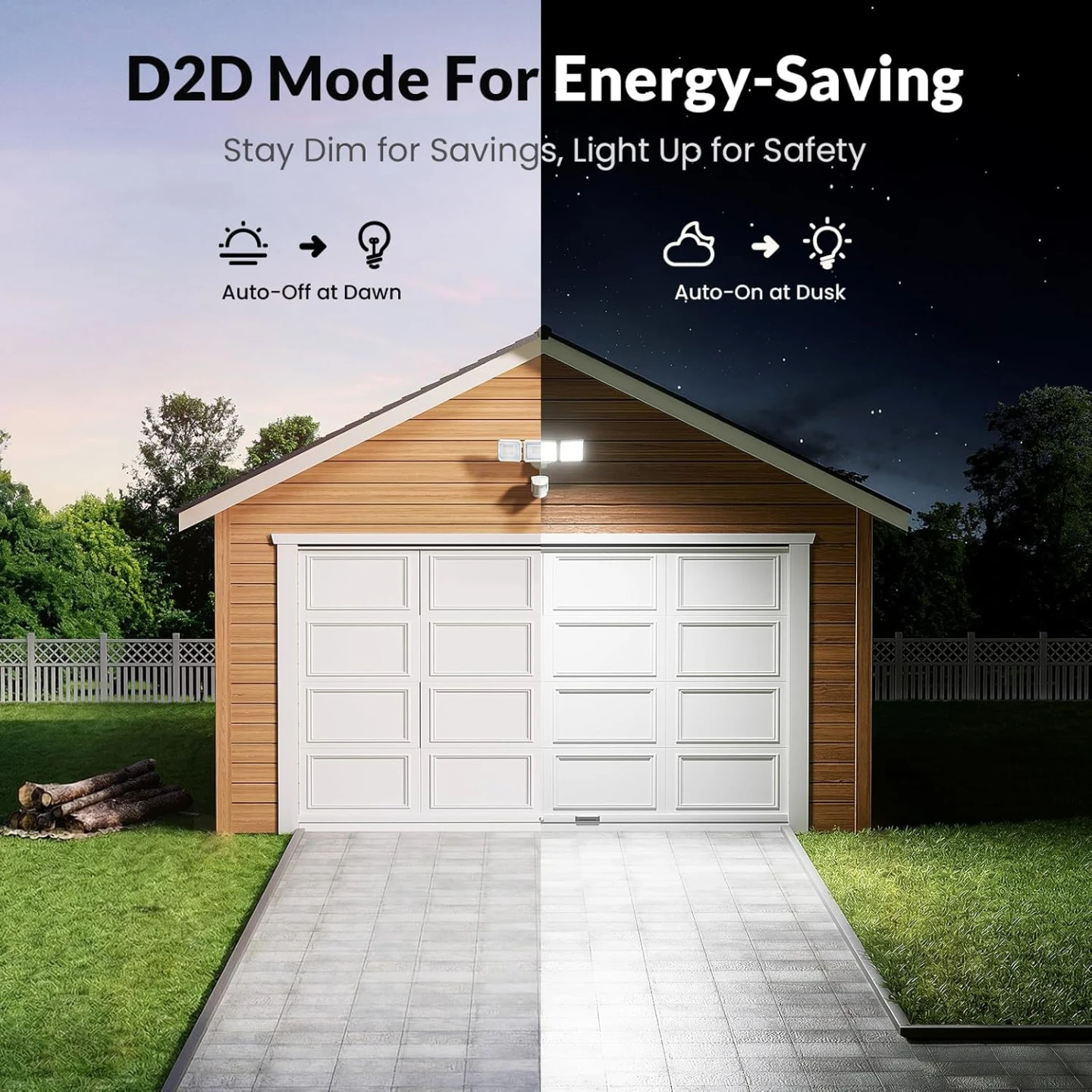 7000 Lumens. Daylight When You Need It. The LED floodlight triple-panel design floods your garage and driveway with crisp, natural light—adjustable from soft glow to full daylight. Single garage? Set it soft. Double garage? Crank it up. Every corner visible. Every step safer. No glare, no guesswork