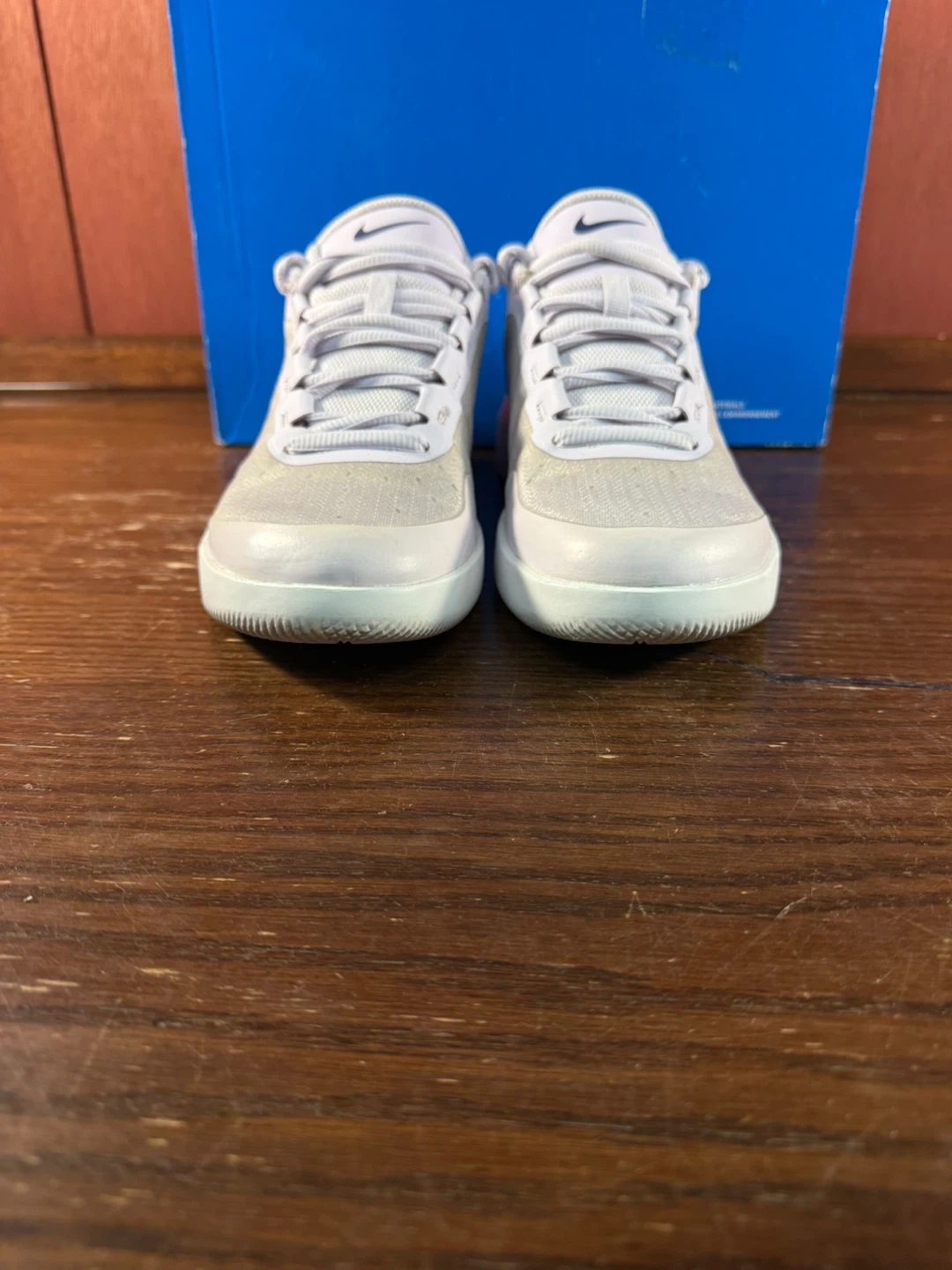 Elevate your game with Nike's sleek design. Gray base with striking purple accents. Ideal for sports and casual wear.