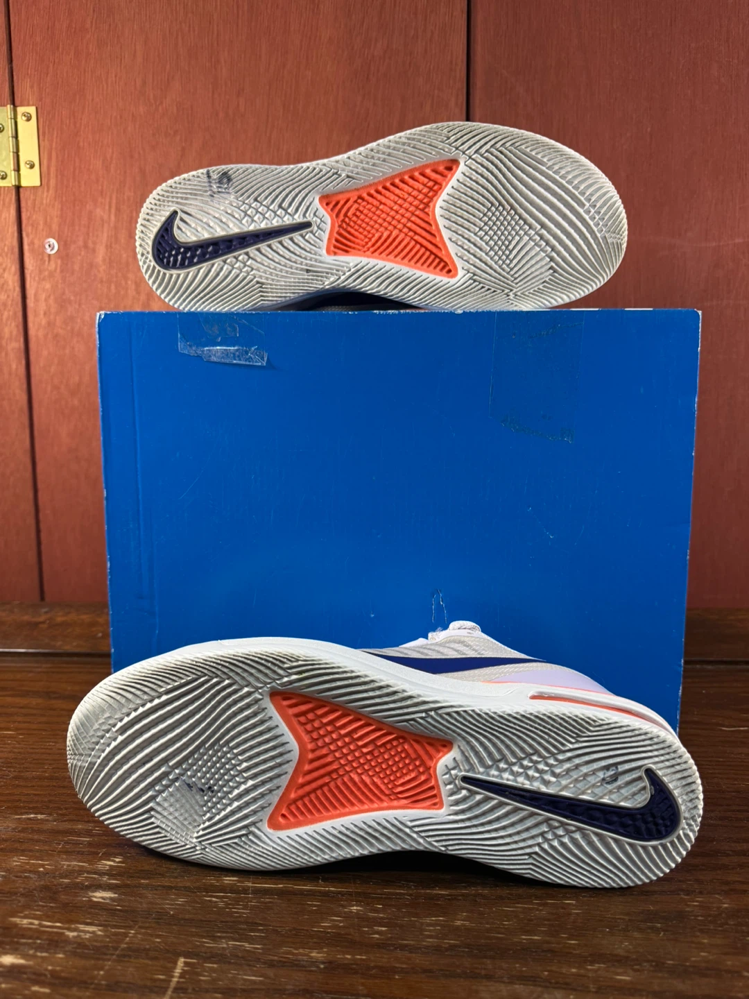 Elevate your game with Nike's sleek design. Gray base with striking purple accents. Ideal for sports and casual wear.