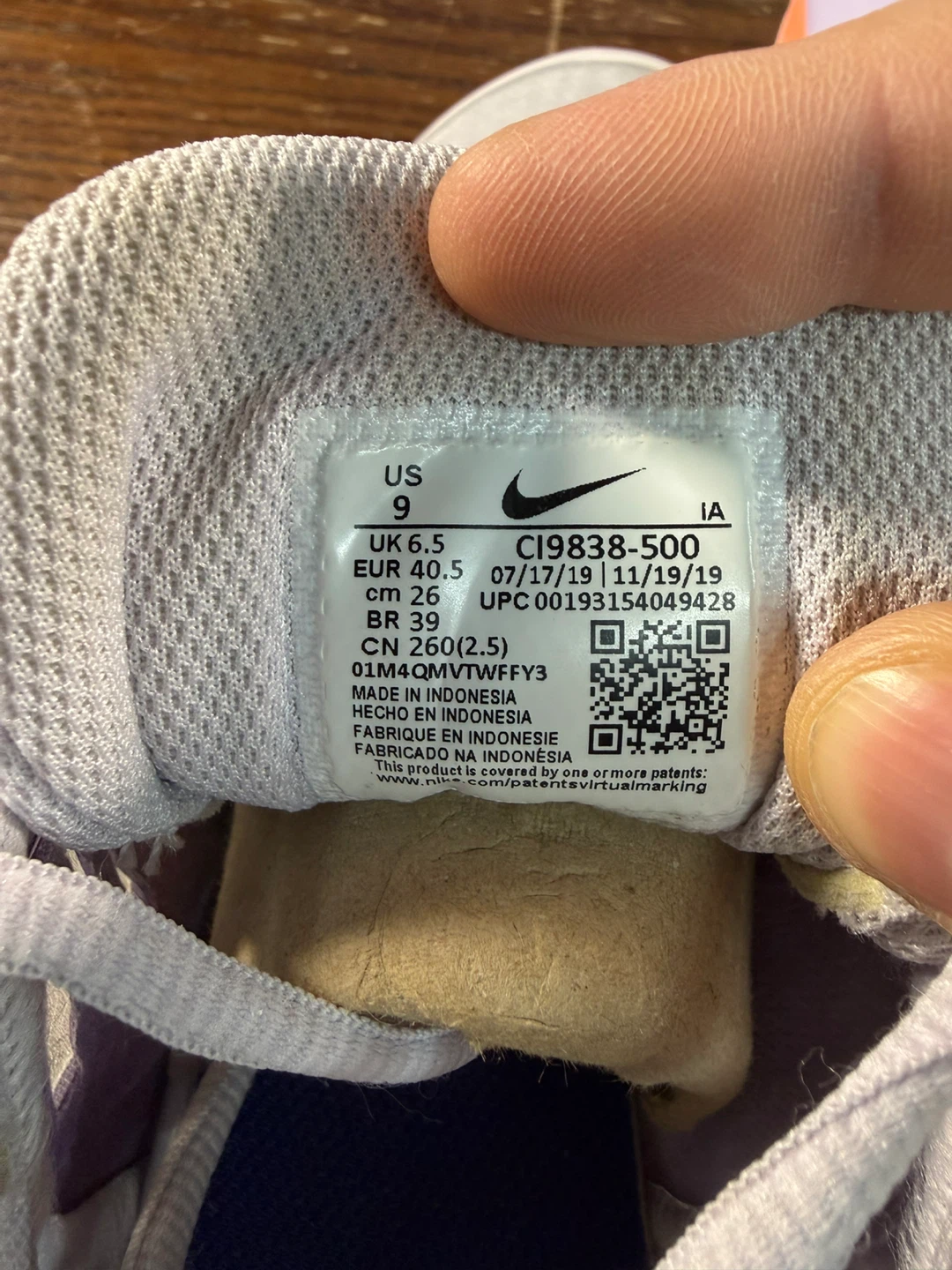 I'm selling a pair of Nike Air Max Vapor Wing MS tennis shoes in women’s size US 9, featuring a stylish purple colourway.