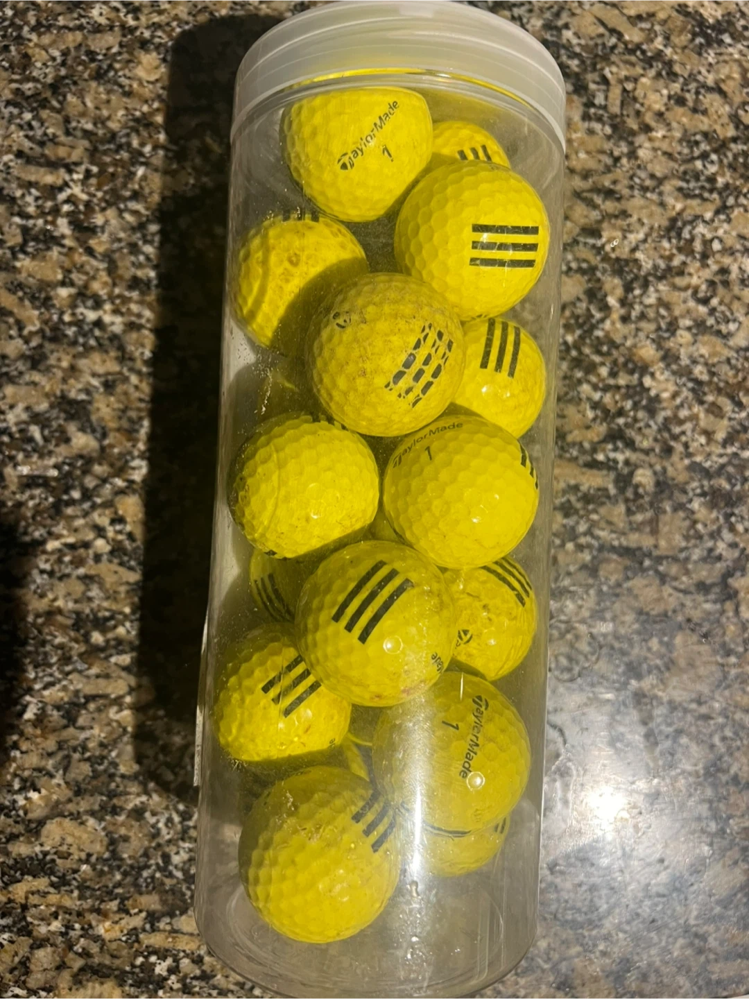 This is a 8-pack $20 and 20-pack $40 of yellow TaylorMade golf balls. They're the standard golf ball size. This would be useful for a golfer looking for practice balls.