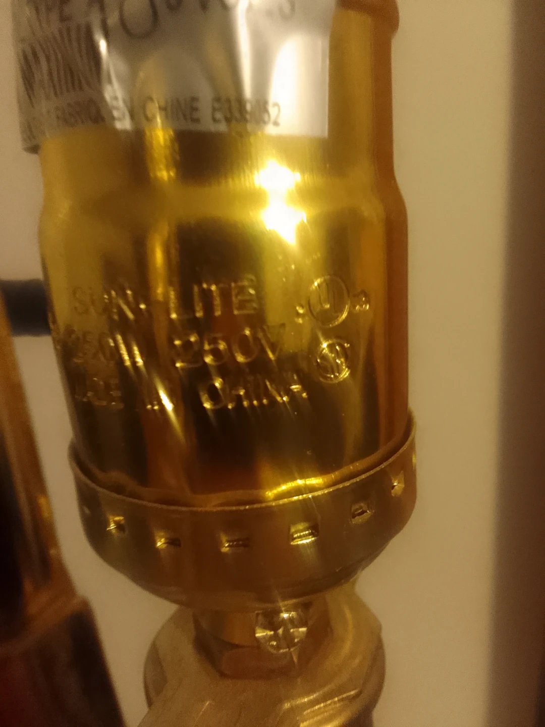 Two stylish table lamps with a gold-coloured conical base and cream fabric shades. They're perfect for adding warm ambient lighting to your living room or bedroom. Each lamp comes with 1 Great Value 10.5 Watt 120Volt light bulb. Each base has some small scratches.