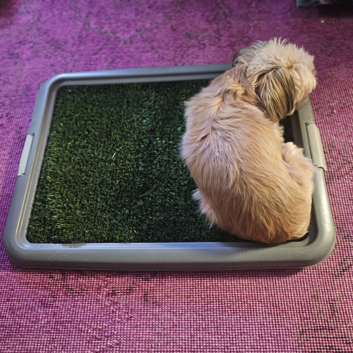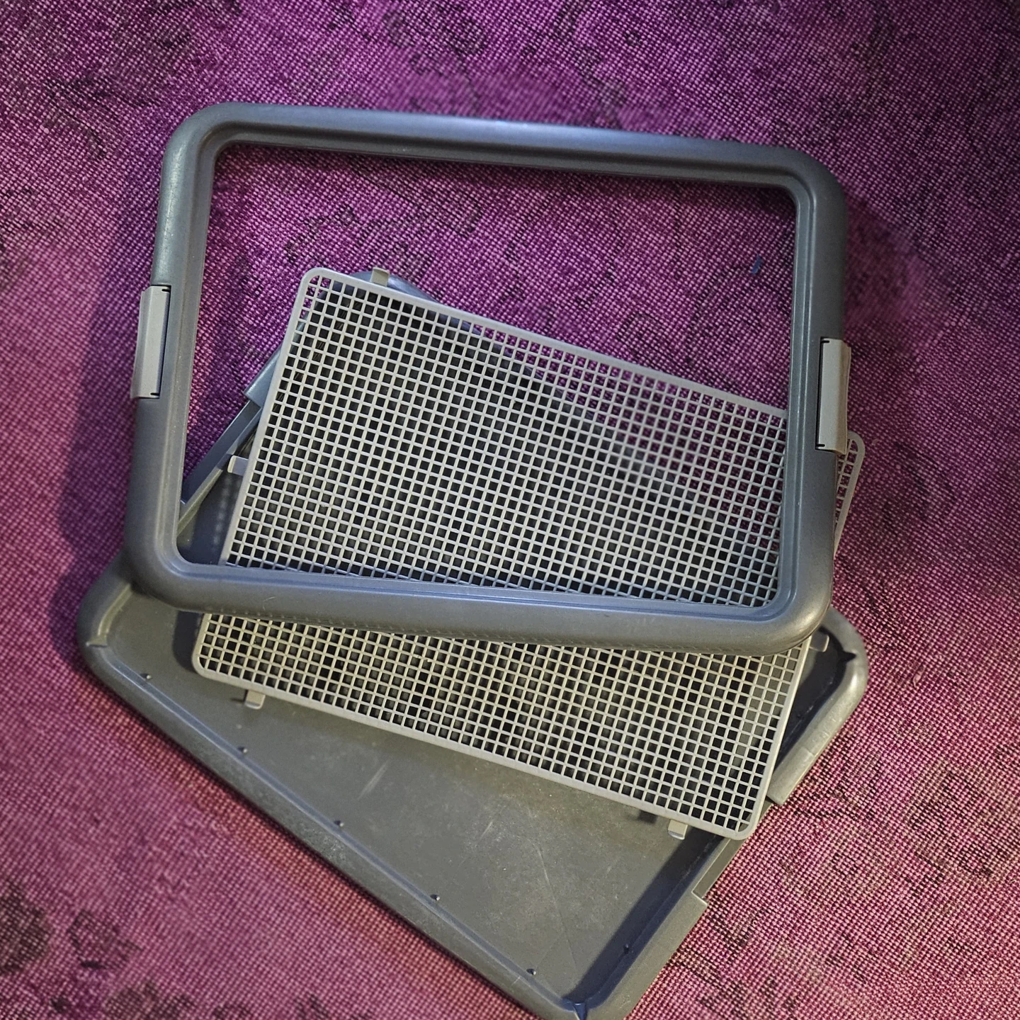 Selling a dog potty training pad. It's in great condition and perfect for training your furry friend! It includes a frame, grid, and base.