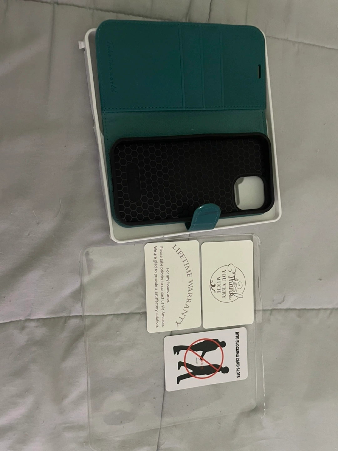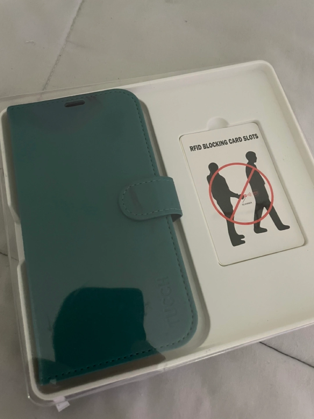 Brand NEW iPhone 12, 12pro & 13 Wallet-style phone case with RFID blocking card slots. Teal and black.