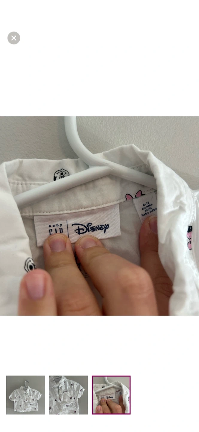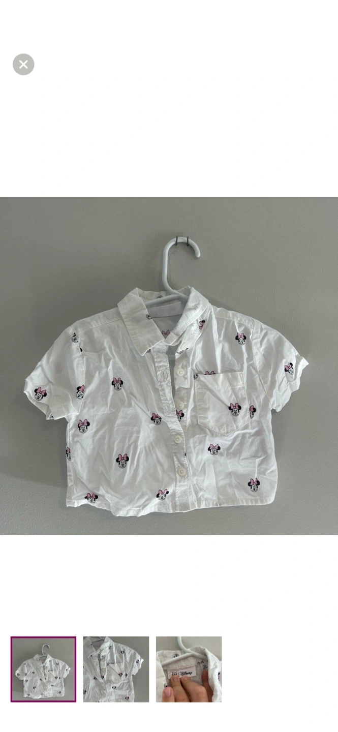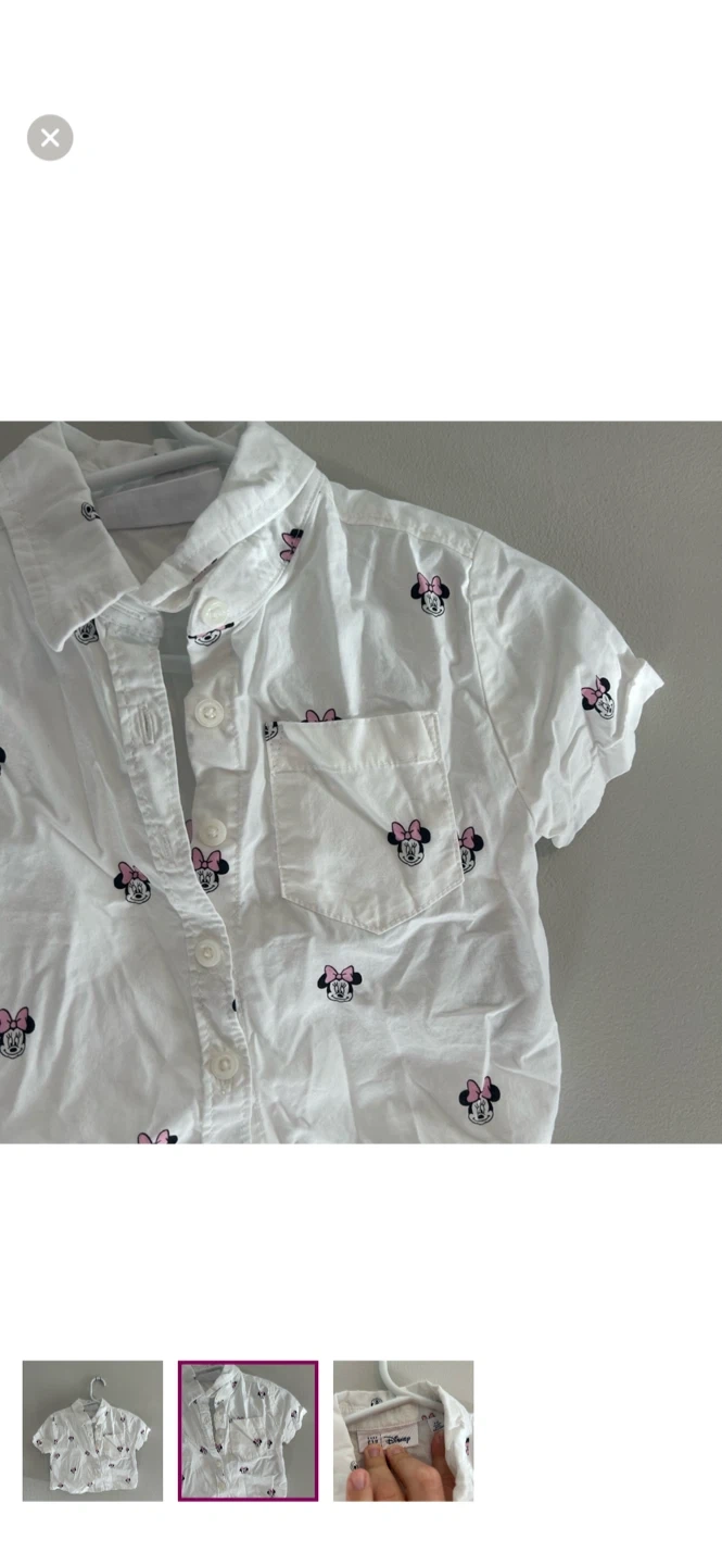 Gap brand. Short sleeve button up shirt. White with Minnie Mouse polka dot print. Size 6/12m. Brand new condition