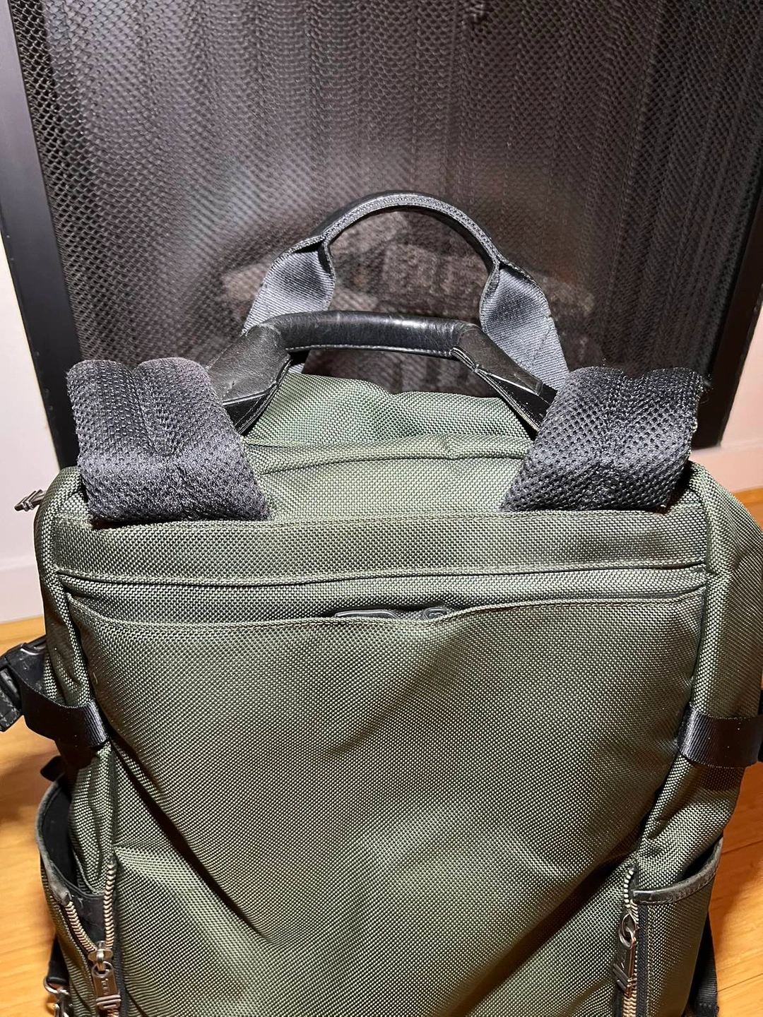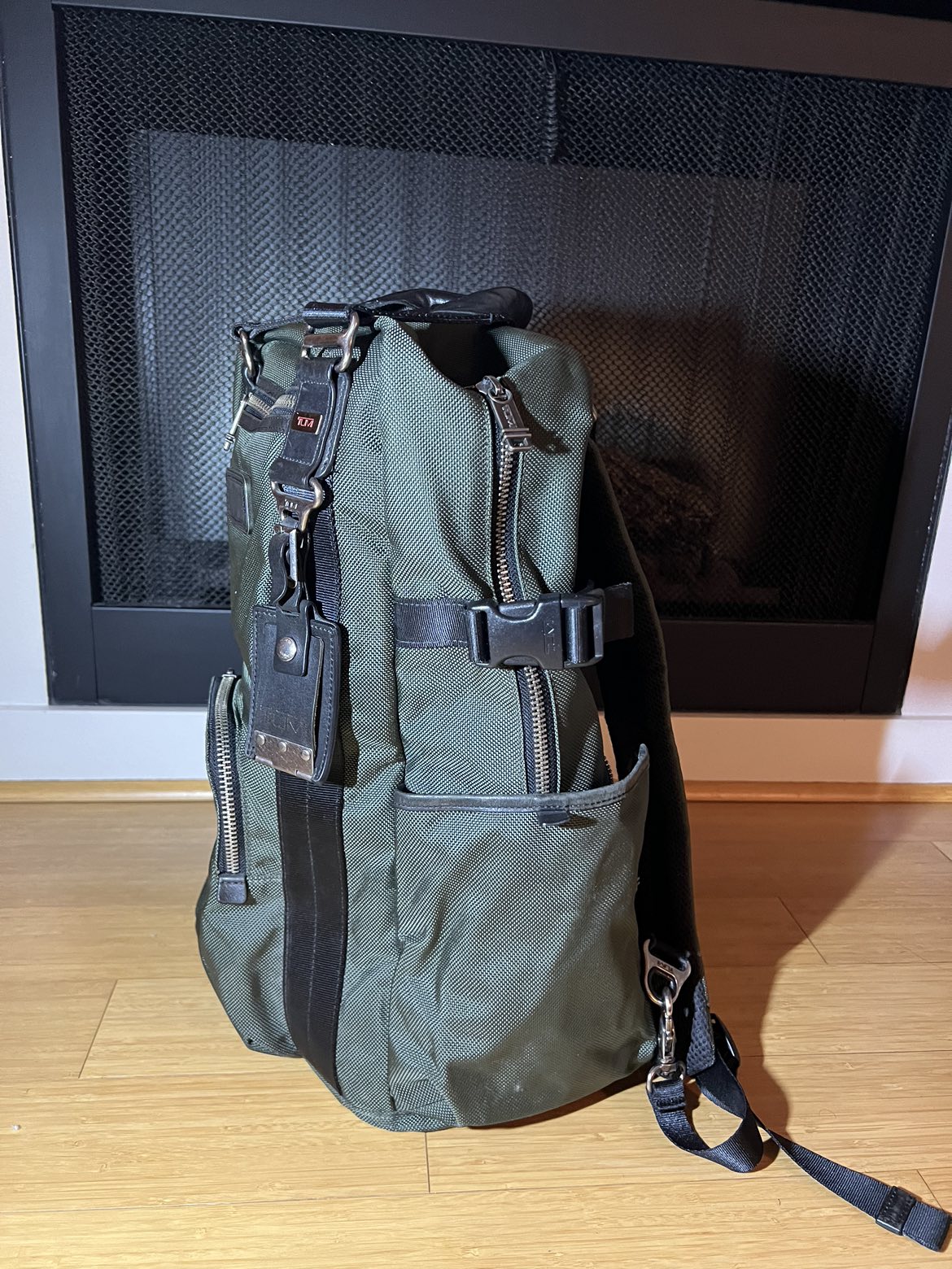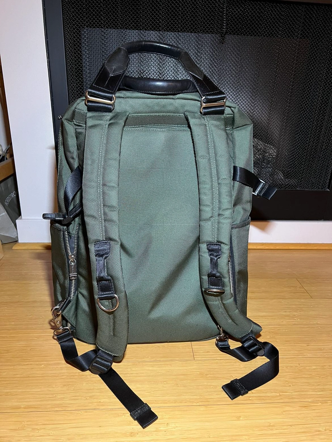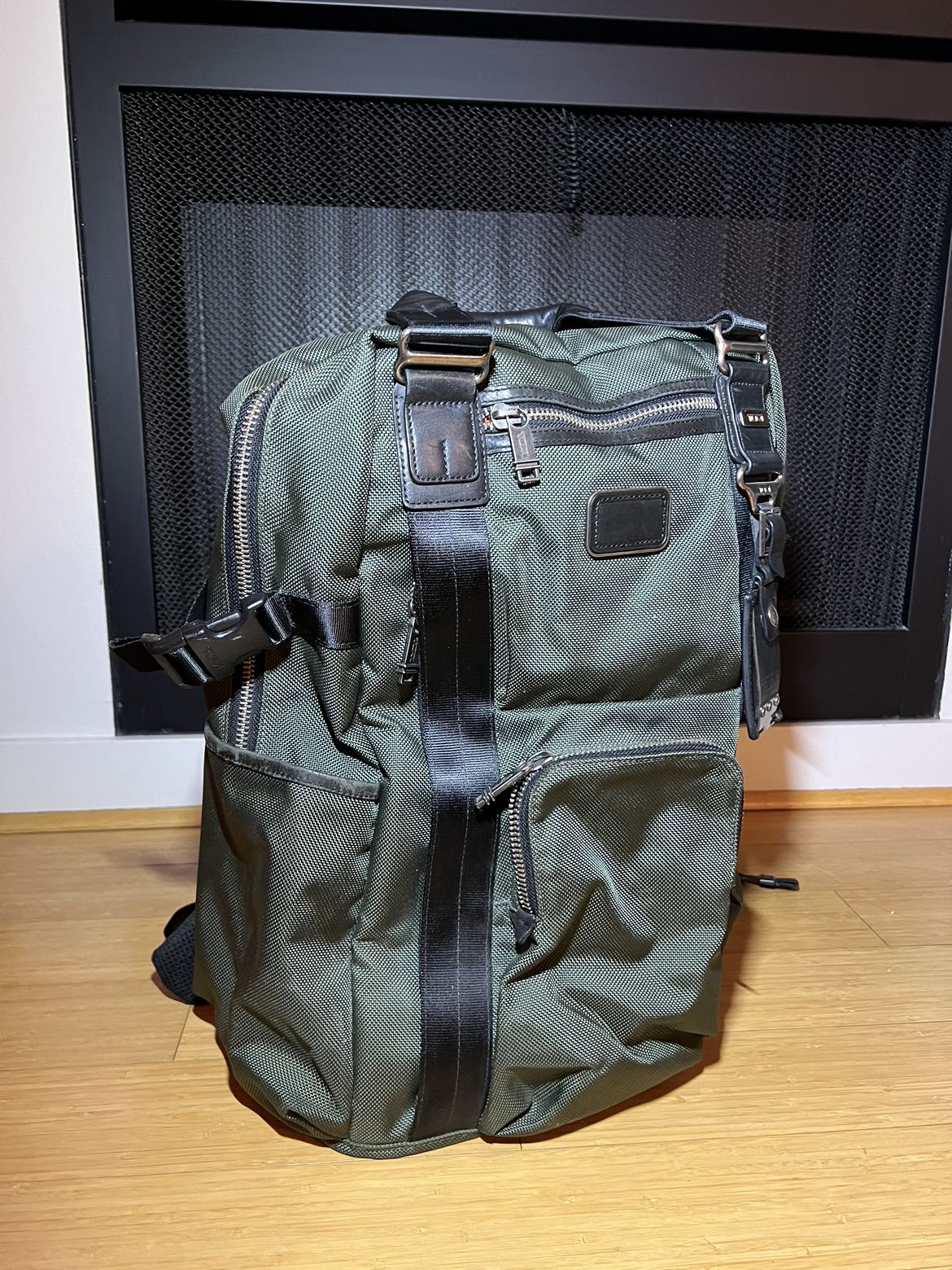 15Tumi Alpha Bravo Lejeune Backpack Tote, Spruce Used some times only. The condition is excellent ** Price is firmed - Military-inspired backpack with leather top-carry handle featuring hide-away shoulder straps - Front U-zip pocket, waterproof side pockets, and additional zip pocket - Measures 18 1/2" x 12" x 8" << Pickup Location >> HMart Downtown 590 Robson St Vancouver