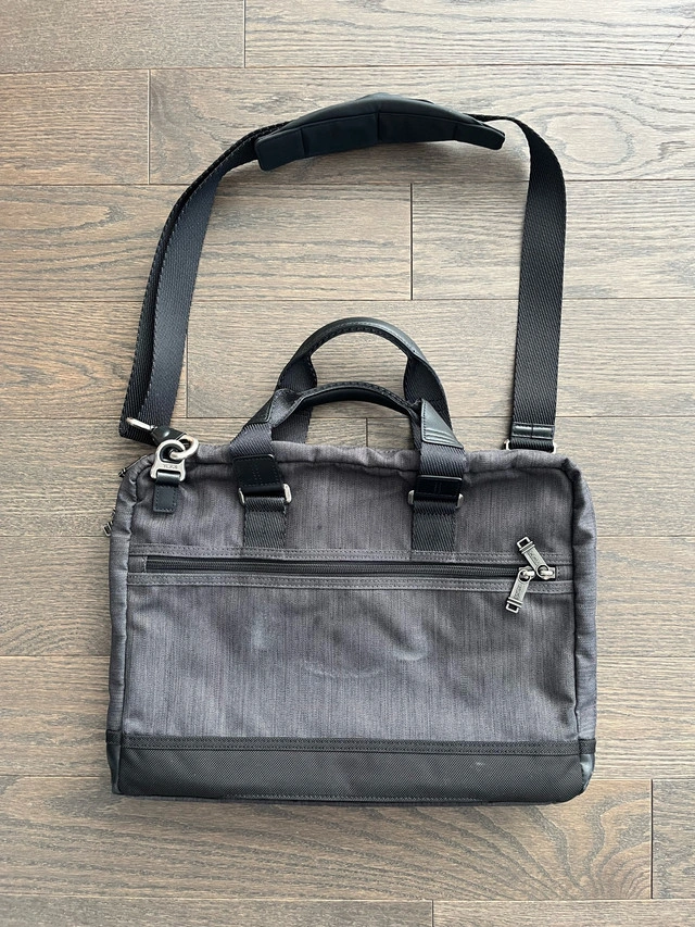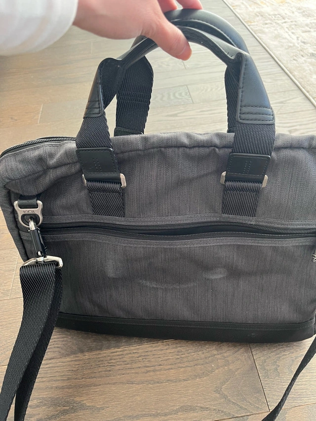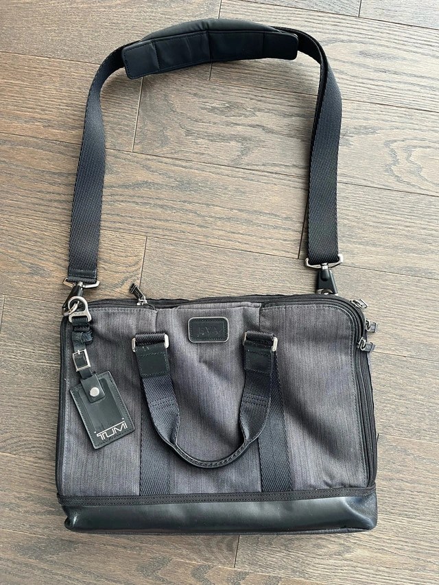 I'm selling a used Tumi portfolio brief, perfect for professionals on the go. This stylish and durable briefcase features a well-organized interior with multiple compartments to keep your essentials secure and accessible. The exterior is made from high-quality materials, ensuring it stands up to daily wear and tear. The bag has some signs of use but is in overall good condition. * Durable Fabric * Multiple interior compartments * Top carry handle * Removable shoulder strap I estimate the value of this portfolio to be $250 based on similar listings on Kijiji. If the ad's up, it's still available – no need to ask! Grab this reliable and stylish briefcase while you can!
