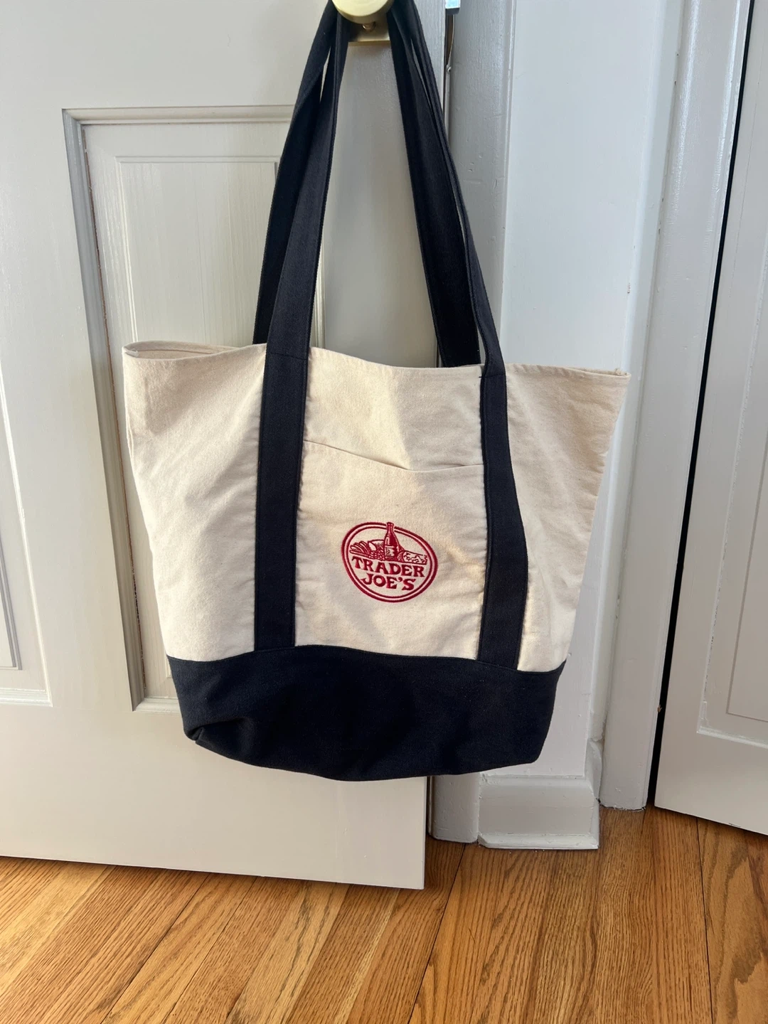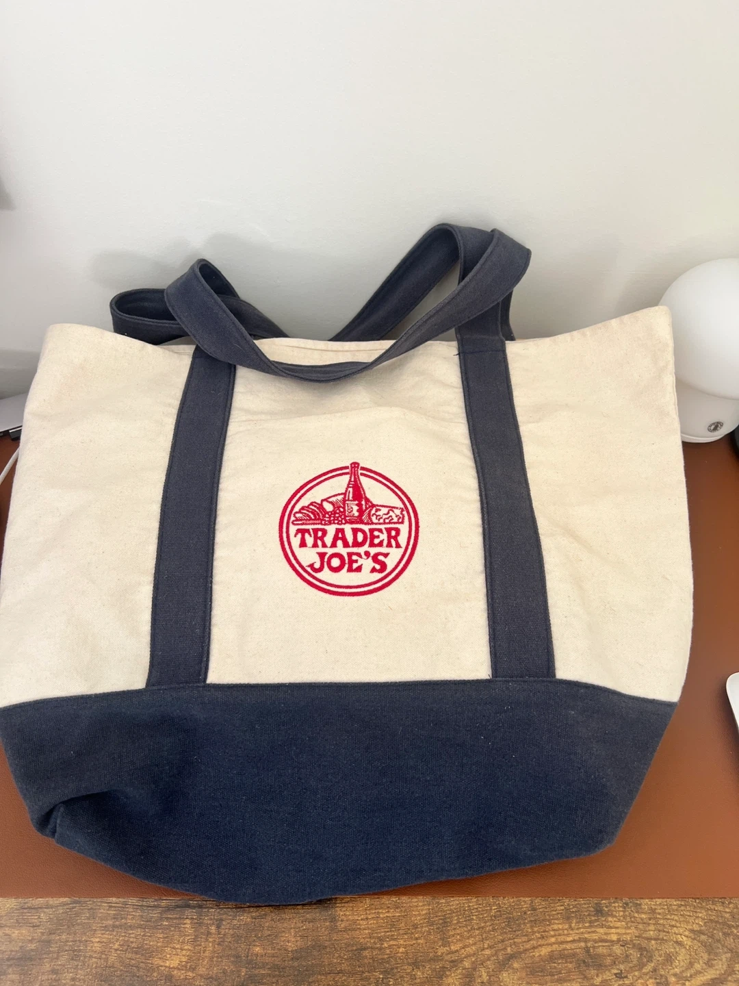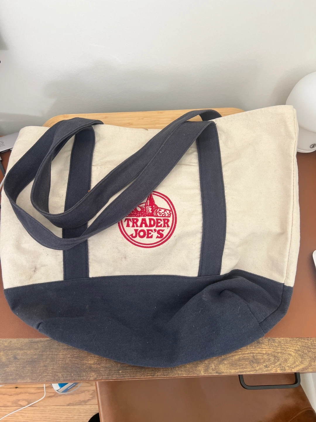 Buy & SellTrader Joe's Canvas Tote BagTrader Joe's Canvas Tote Bag$5,000Trader Joe's canvas tote bag. Beige with navy blue bottom and straps. Sturdy and spacious for groceries or everyday use!WHERE TO MEETCheck LocationView MapSELLERPaulCheshire100 reviews0 chats·0 favorites·35 viewsSEND CHAT TO SELLERHi Paul! I’m interested in your listing.Hi Paul! I’m interested in your listing.Get the Karrot app to chatSign In to chat