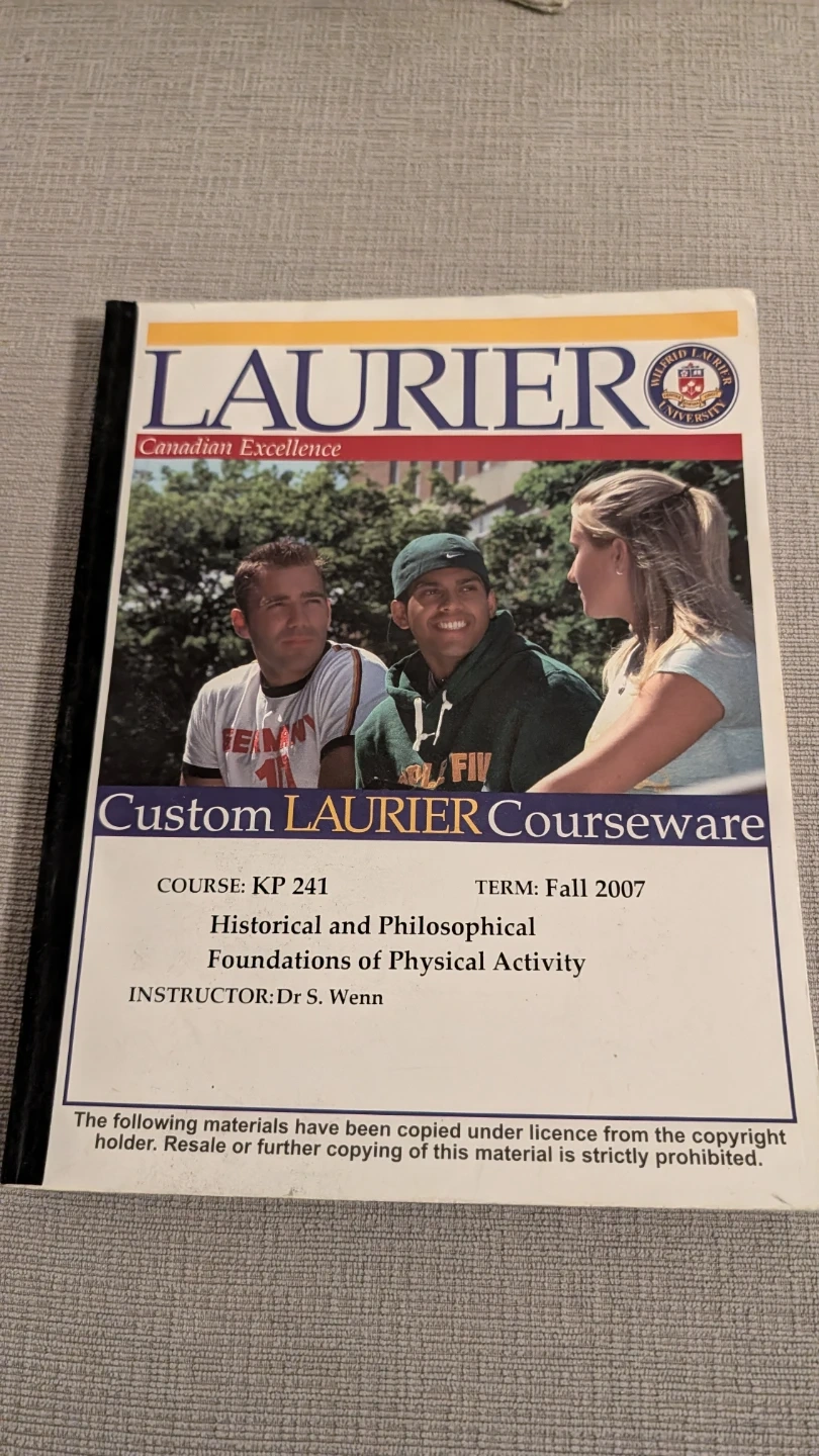This is the custom courseware for Laurier's KP 241 course, covering Historical and Philosophical Foundations of Physical Activity. It's from the Fall 2007 term, instructed by Dr. S. Wenn. This material is licensed and resale is prohibited.