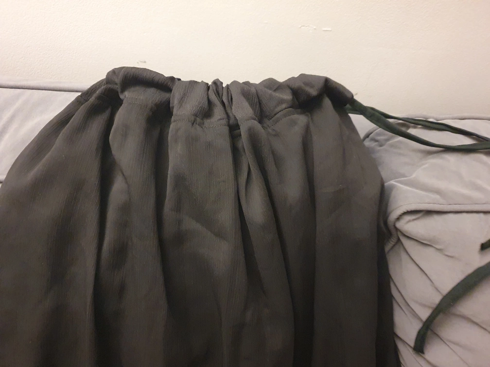 Flowy maxi skirt in a lovely black colour. Great for dressing up or down! Adjustable waiste...with wide...rope. Tailor switched but lenght lobg for me. never used.