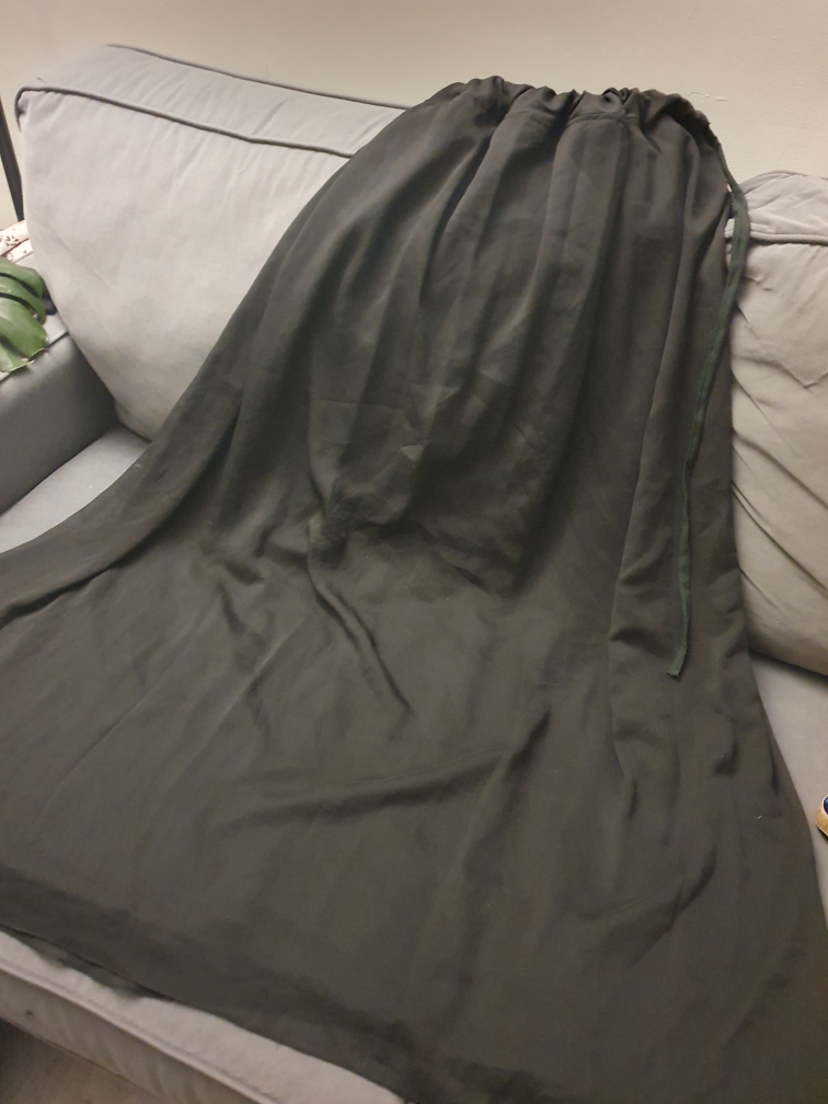 Flowy maxi skirt in a lovely black colour. Great for dressing up or down! Adjustable waiste...with wide...rope. Tailor switched but lenght lobg for me. never used.