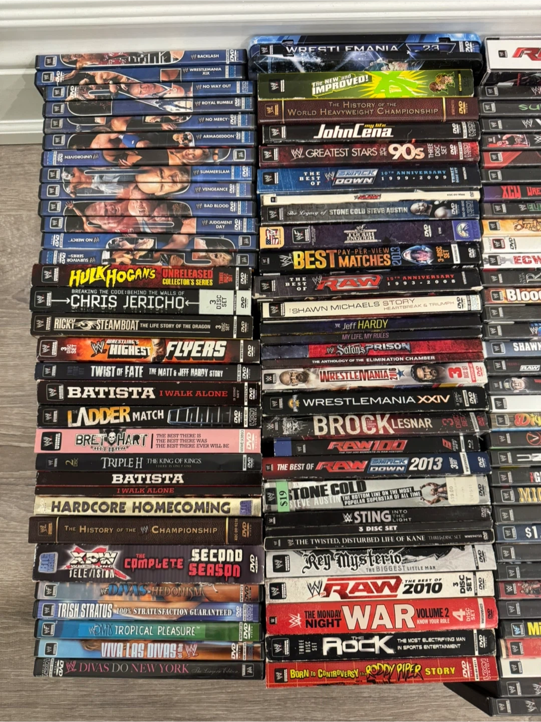 Huge lot of wwe wrestling DVDs including tnas and all lots of great valuable titles here. Selling as a lot $1500 or best reasonable offer please do some research on what is here before coming at me with a lowball. There is easily double the value of my asking here