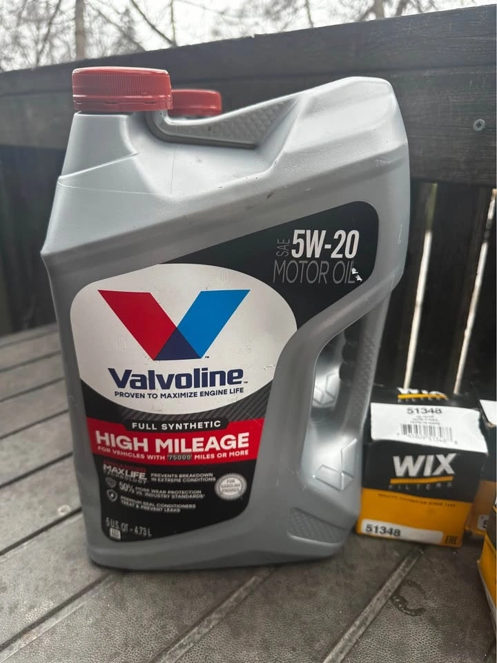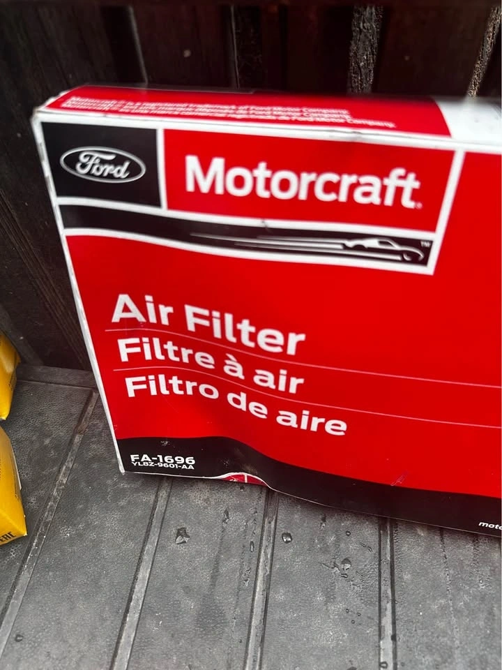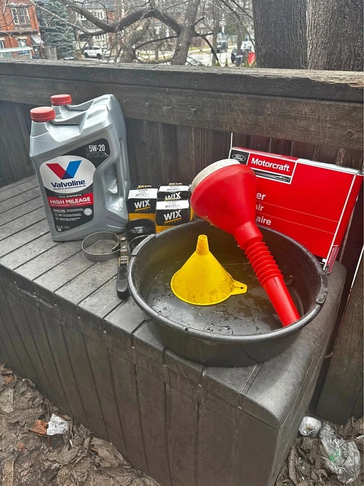 Includes 2 jugs of 5W-20 motor oil (NEW), 3 oil filters (NEW), an air filter (NEW), filter wrenches, funnel, steel ramps, and an oil pan. Everything must go together, pickup only. These were all used on a 2010 Ford Escape, item specs are in the photos.
