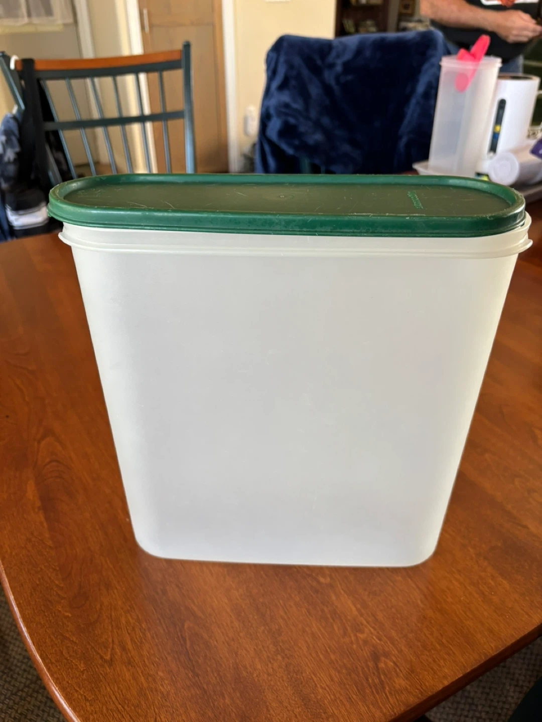 10Selling a Tupperware Modular Mates container with a green lid. It's in great shape and perfect for keeping your pantry organized. This container is ideal for storing dry goods and keeping them fresh longer. It's a handy addition to any kitchen!