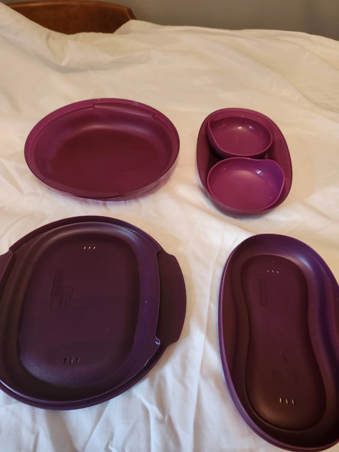 10Tupperware breakfast microwave in purple, great for making breakfast sandwichs or just eggs. They're in good condition and ready for a new home Asking $20 each or both for $30