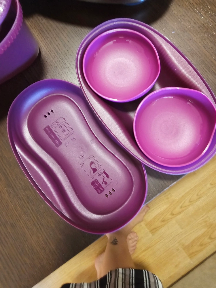 Selling a Tupperware microwave cooker set in purple! It includes a large container pasta cooker and egg maker . It’s in great condition and ready for a new home!