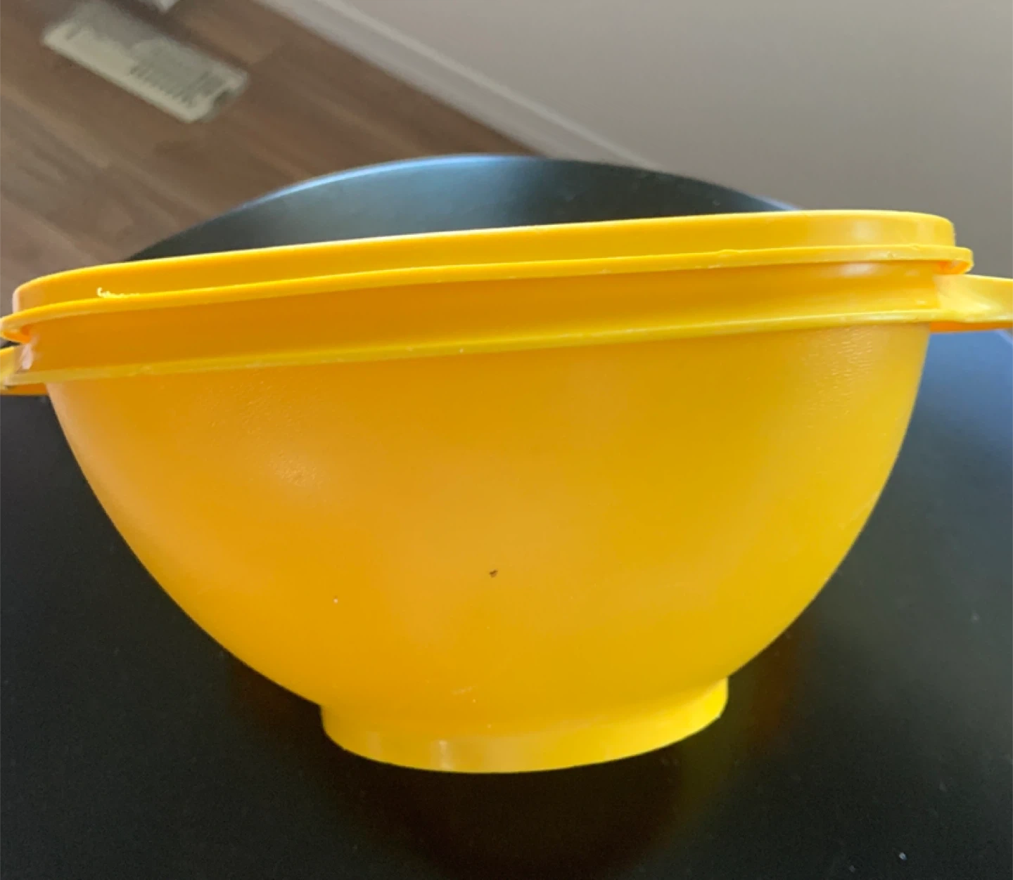 70Selling a vintage Tupperware bowl! It's a vibrant yellow colour and comes with a matching lid. It's in great shape and perfect for storing leftovers or bringing a dish to a potluck. Made in Canada!