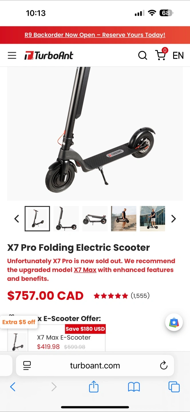 89Used TurboAnt X7 Pro folding electric scooter. Includes charger and extra pair of (front and rear ) tubes . Great condition. Lightweight and portable.