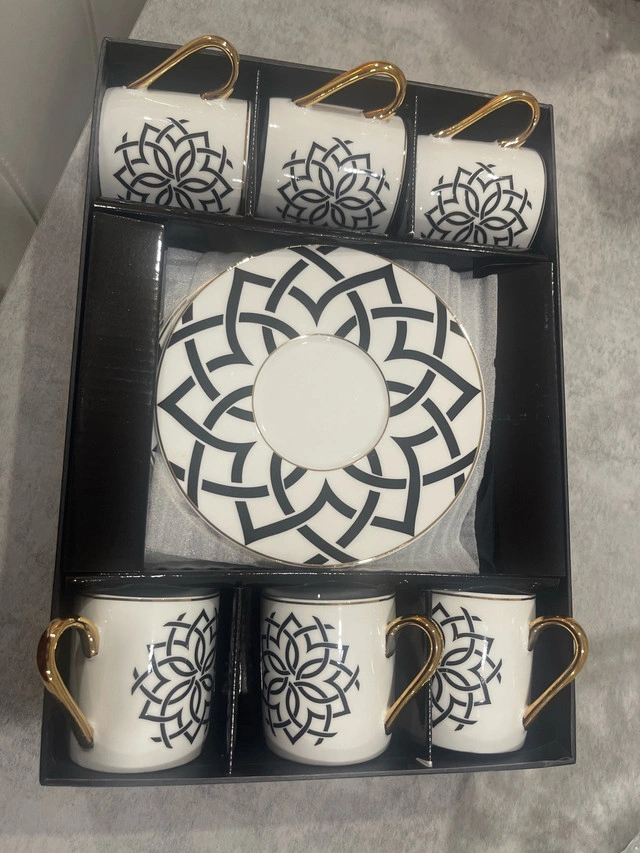 34Elevate your coffee ritual with this stunning Turkish coffee set, featuring a striking black and white floral design accented with elegant gold trim. Includes six cups and matching saucers. This set is like new, only used a few times. * Includes 6 cups and 6 saucers * Elegant black and white floral pattern * Gold trim detailing I've priced this set at $20. If the ad is up, it's available!