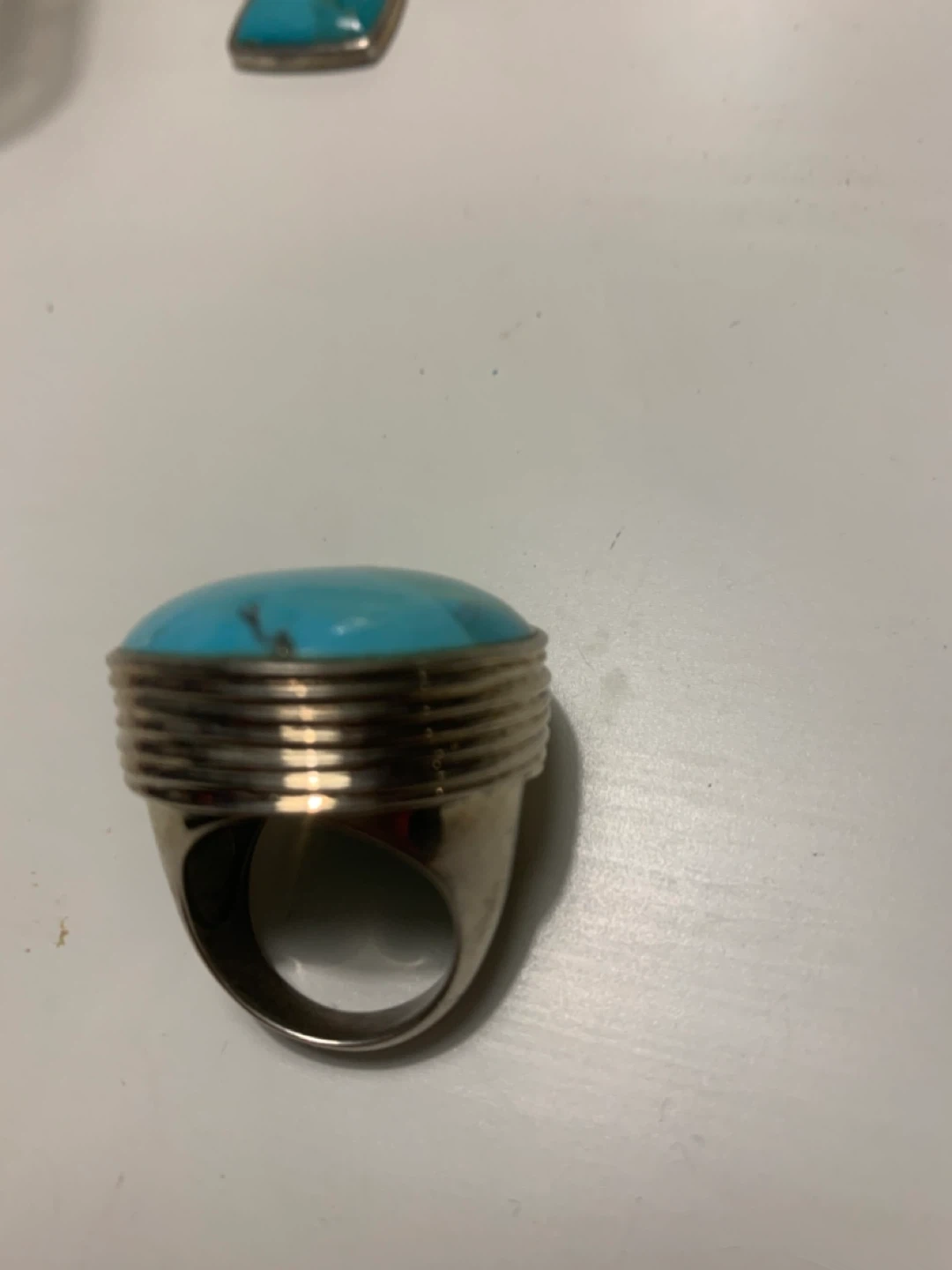 10Selling a turquoise ring. It's in good condition and has a unique design. The turquoise stone has a beautiful colour. Feel free to message me if you're interested!