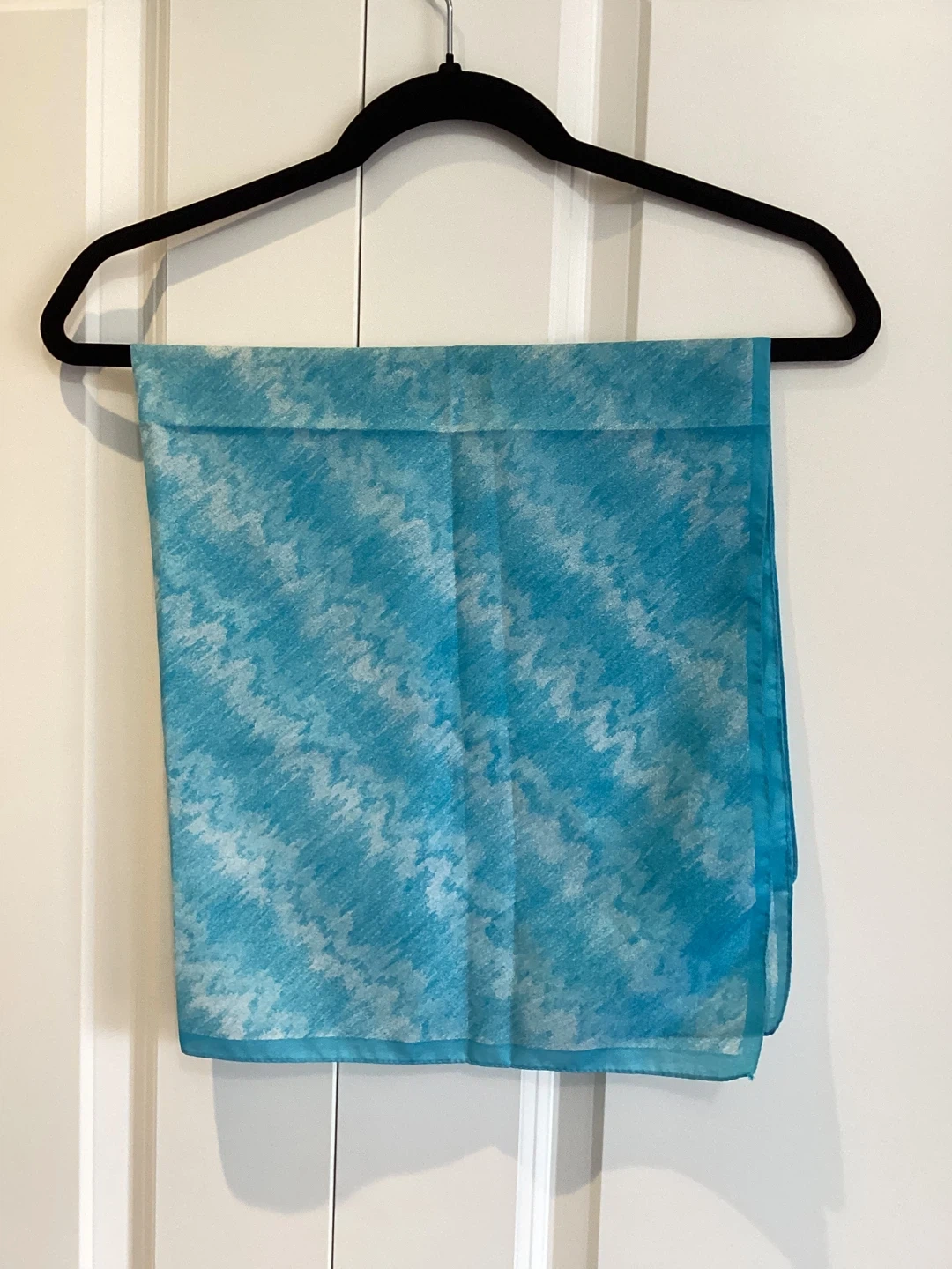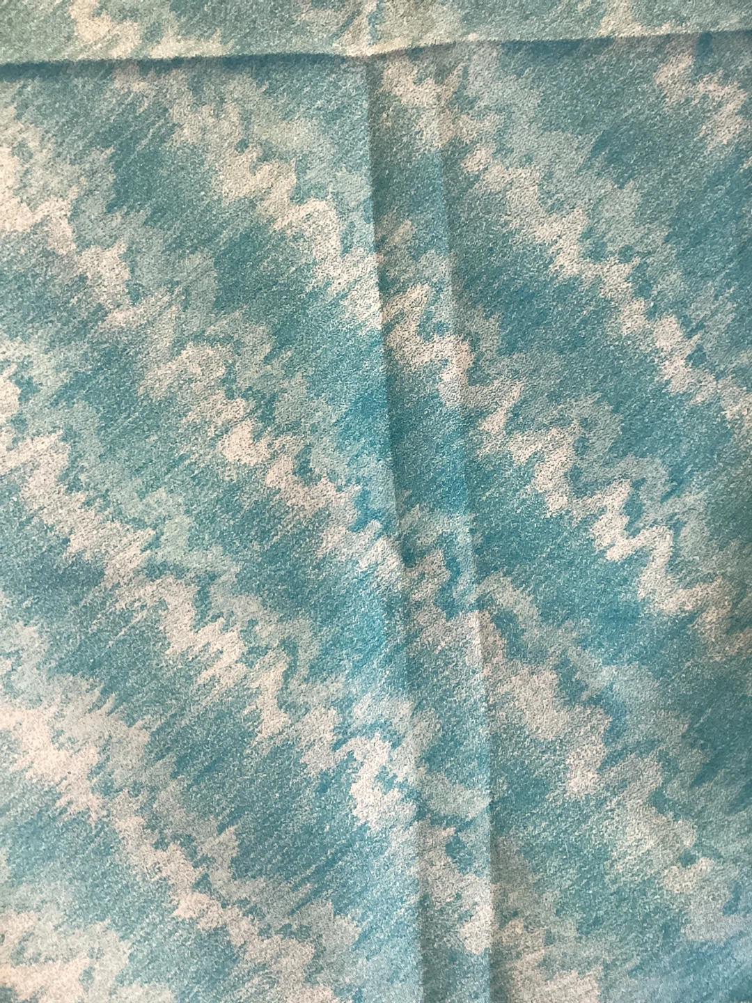 207Turquoise Square Scarf, the tag is missing but I would say it is 100% Polyester, approximate size 26 1/2” X 26 1/2”, $5 firm.