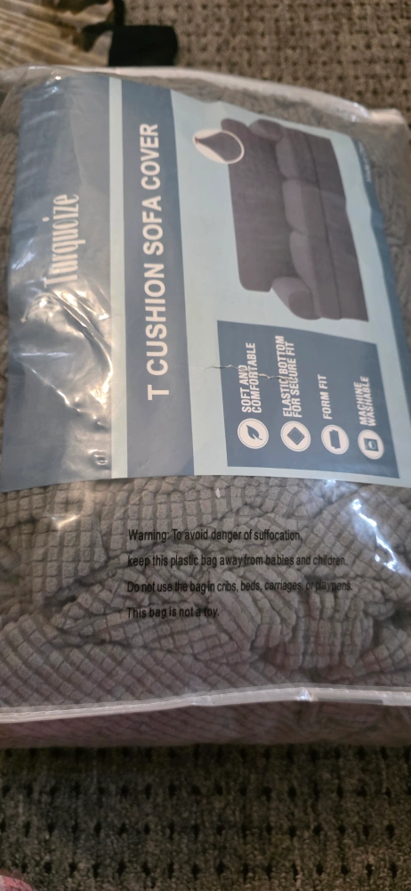 10I have a brand new T cushion sofa cover for sale! It's soft and comfortable, with an elastic bottom for a secure fit. It's also machine washable. Comes in original packaging!