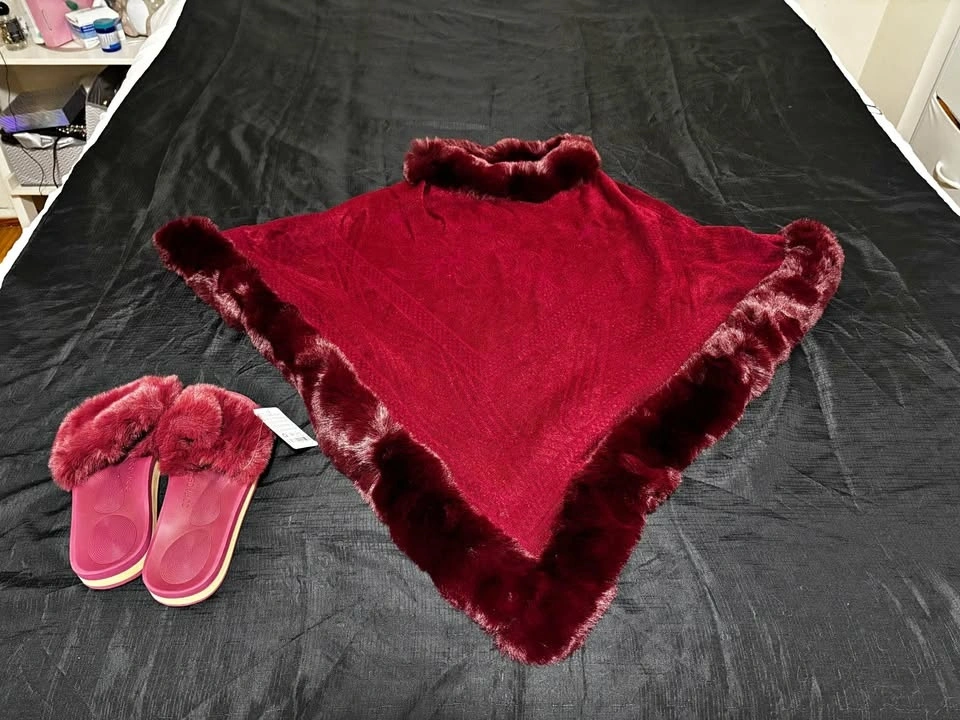 Faux Fur Poncho & Slippers