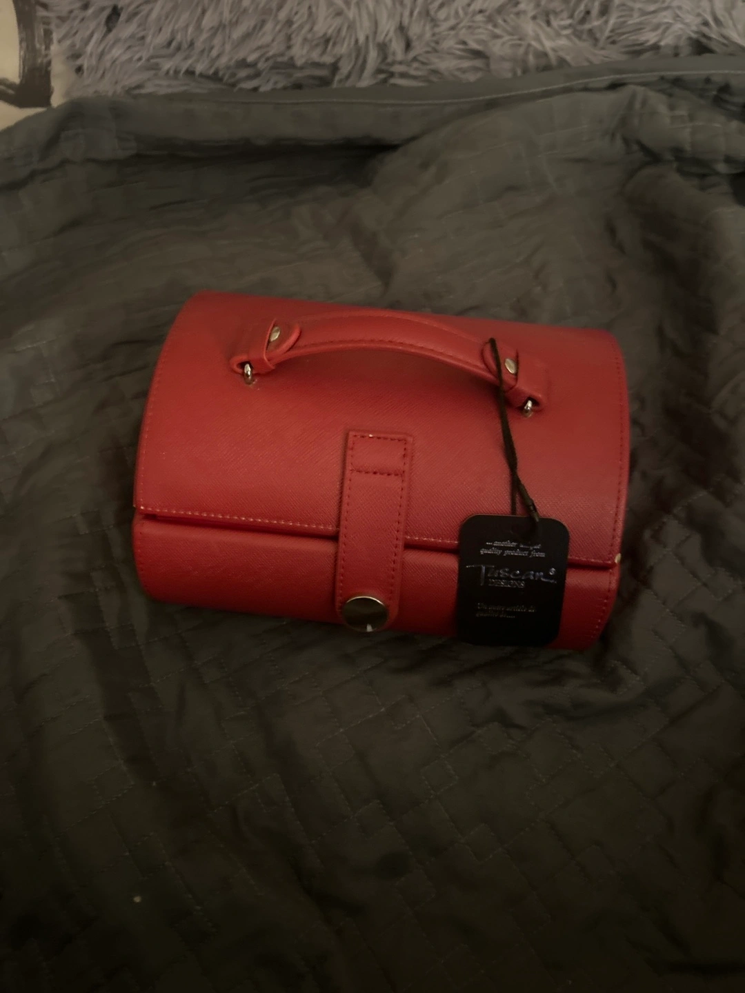 Selling a lovely red jewellery box from Tuscan Square! It's perfect for keeping your precious items safe and organized. The box has a mirror and a removable tray, making it super convenient to use