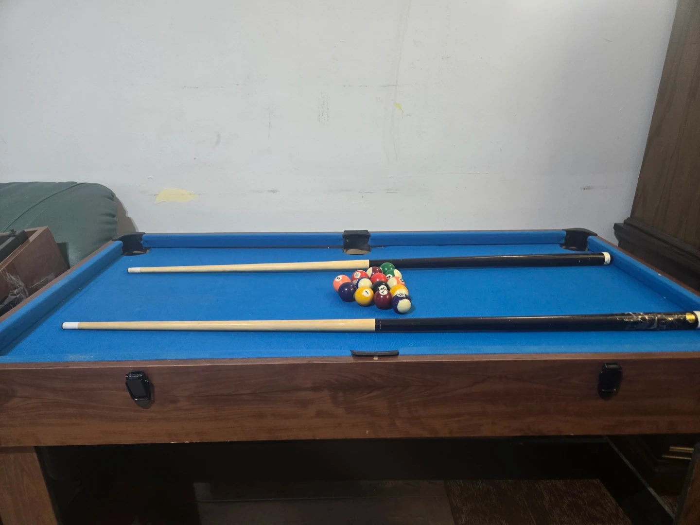 All in one Selling a multi-game table that includes pool, air hockey, and foosball! It's a great way to have some fun at home with friends and family. Perfect for game nights or just some casual entertainment