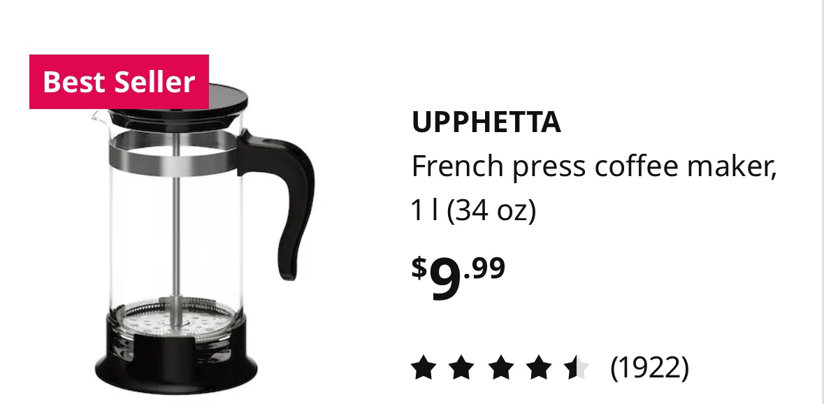 I have some parts from this IKEA French press. If they’d be useful for you, please let me know.