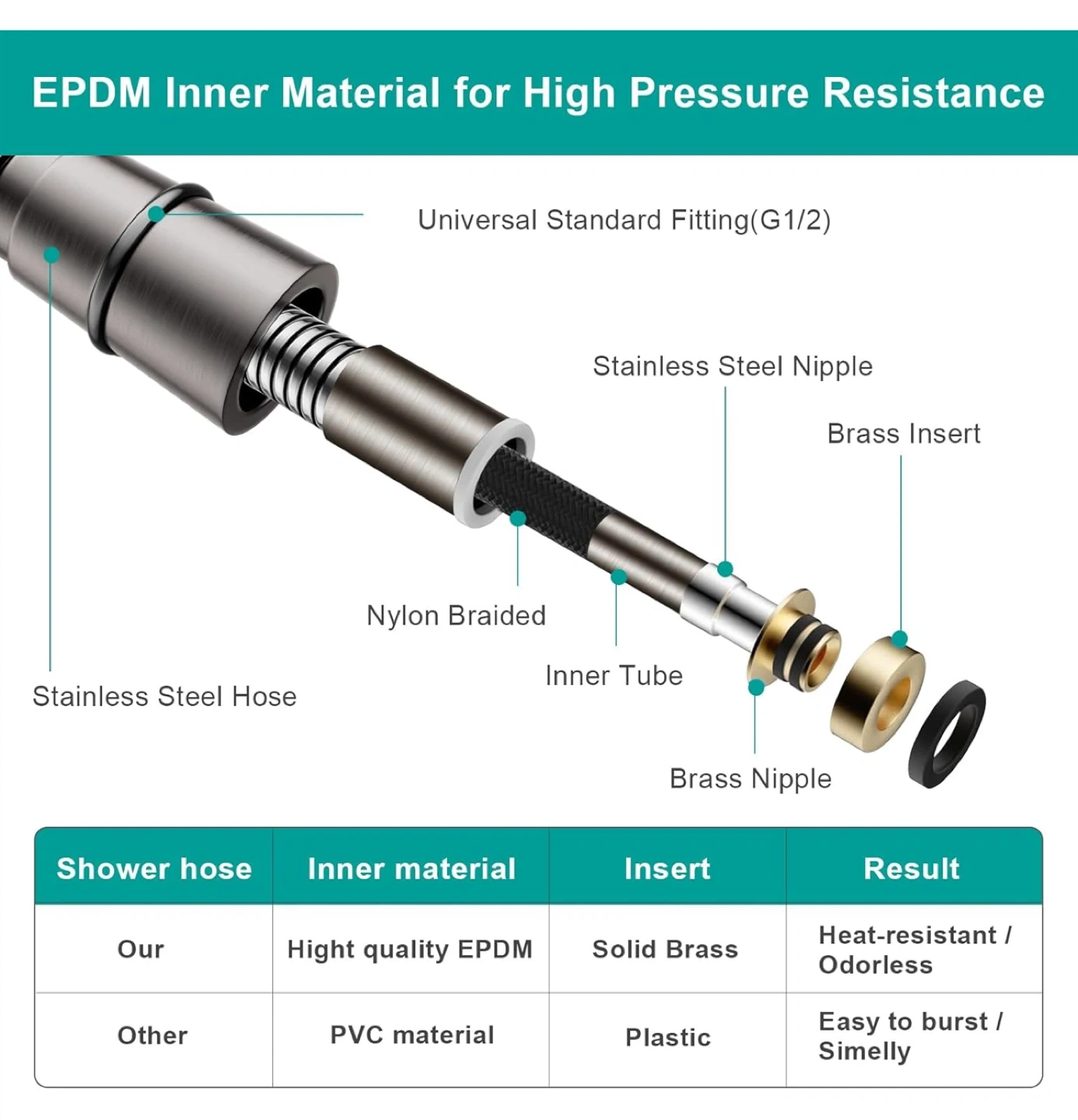 Shower Hose 304 Stainless Steel Extra Long Shower Hose Replacement Handheld Shower Head Hose Extension (Chrome Plating, 59)