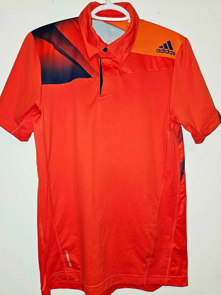 2x Adidas Adizero Climacool Polos (Vibrant Orange/Blue): Like New, excellent pre-owned condition. Men’s S (Adult). Shoulder 16", Length 26".