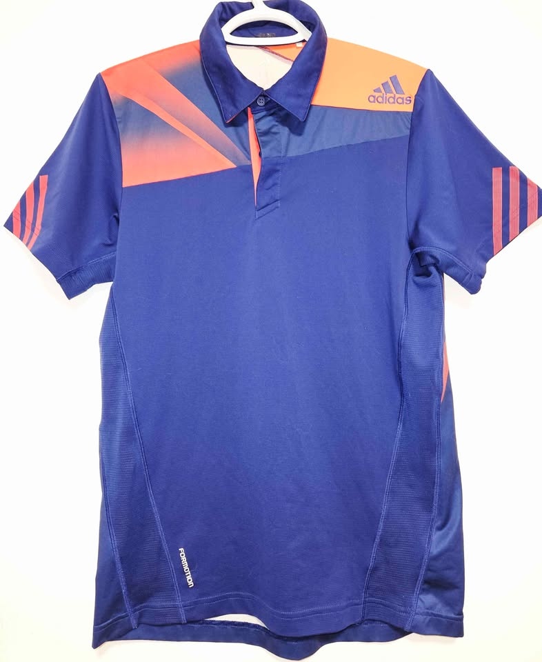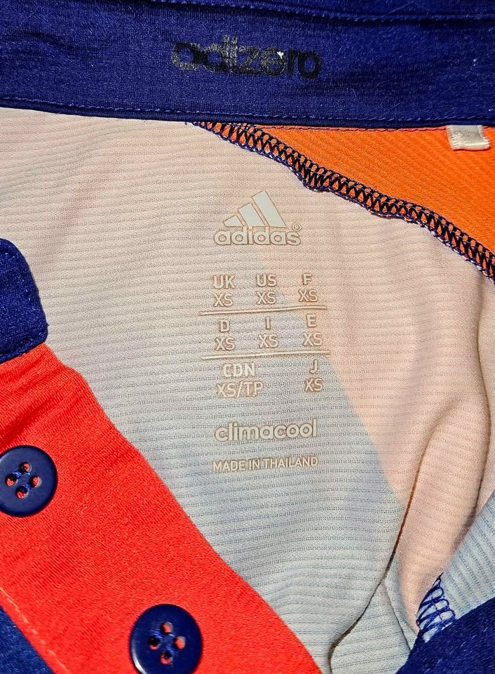 2x Adidas Adizero Climacool Polos (Vibrant Orange/Blue): Like New, excellent pre-owned condition. Men’s S (Adult). Shoulder 16", Length 26".