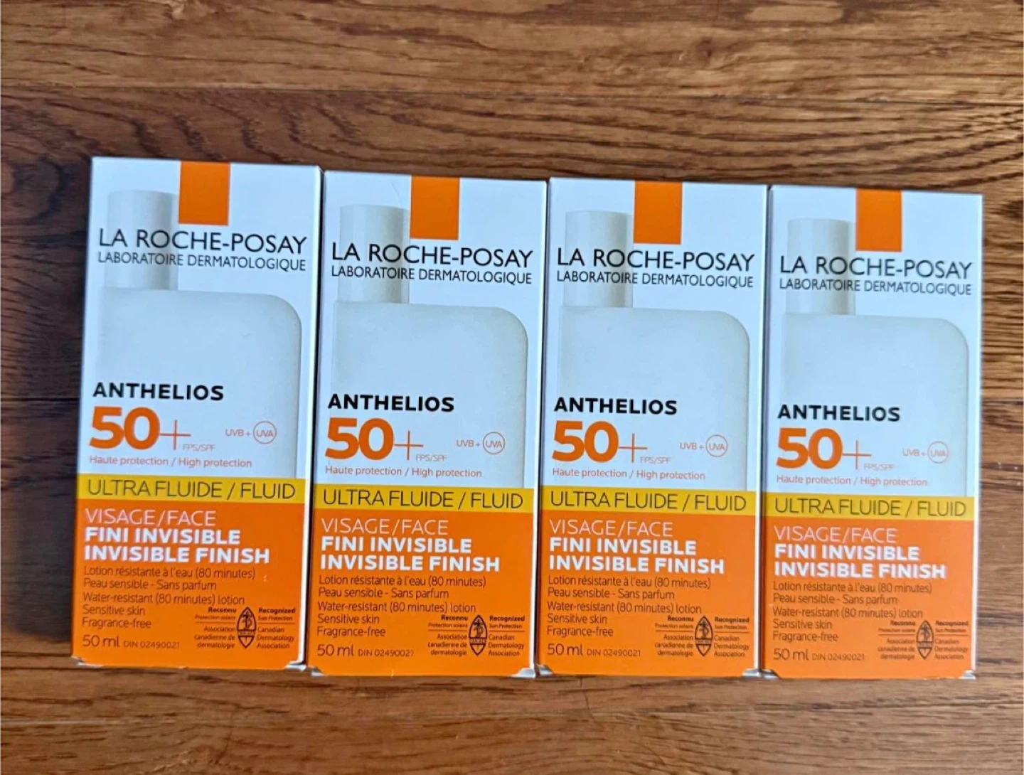 This is La Roche-Posay Anthelios SPF 50+ Ultra Fluid Lotion bottles. Each bottle is 50ml and offers high protection. It's water-resistant for up to 80 minutes and fragrance-free. This lotion is suitable for sensitive skin.