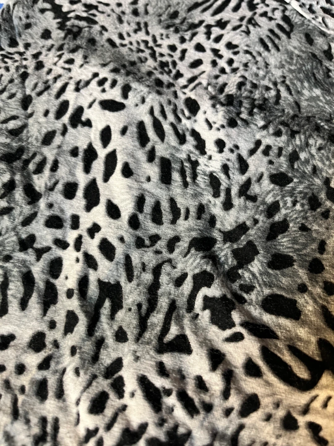 Snow leopard print camisole with lace trim.
