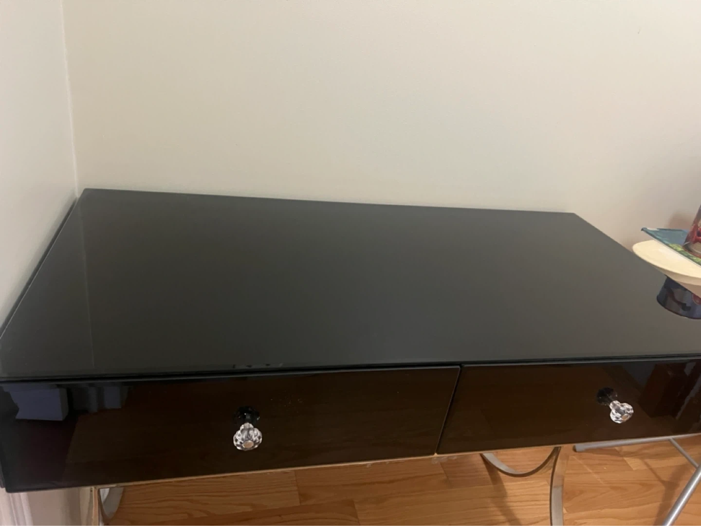 Black Vanity Desk with Crystal Knobs