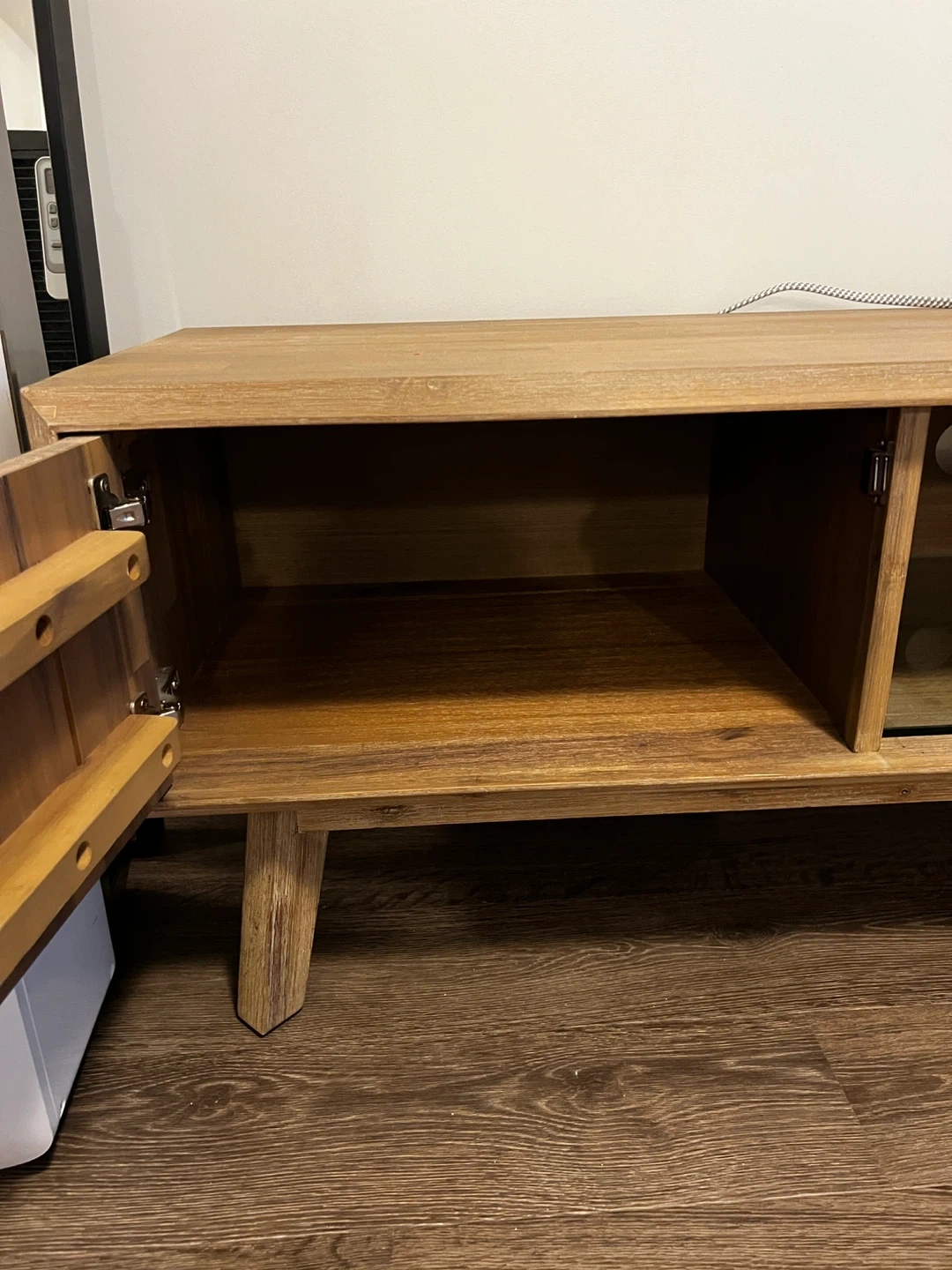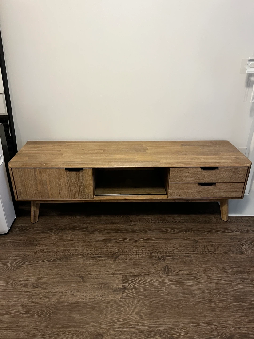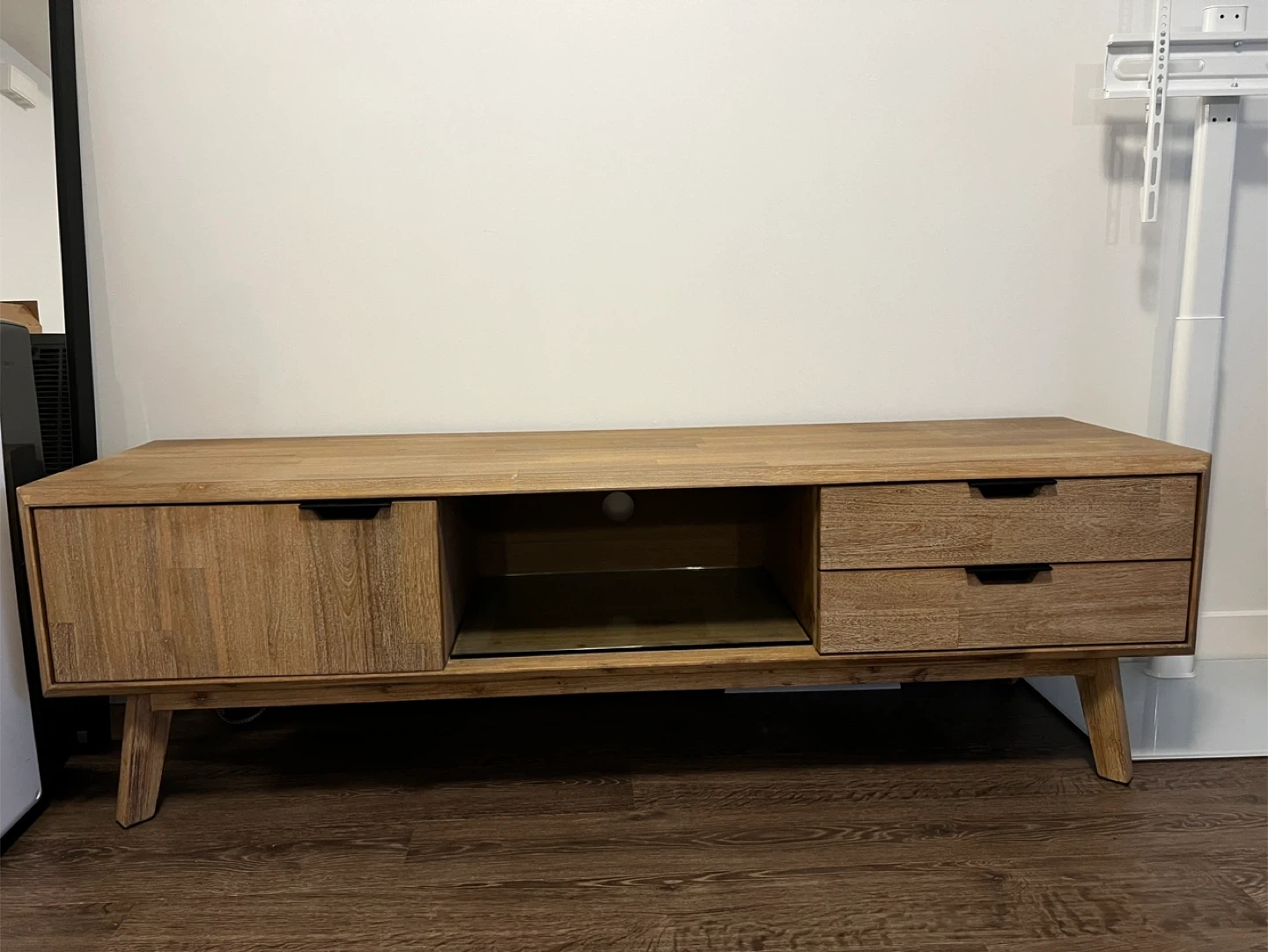 Tv/Media Stand $300 Pick up close to Burquitlam skytrain station Selling because we moved and need something with more storage Originally from Structube Comes with a glass shelf for the middle portion but missing pegs to hold the shelf up Overall dimensions 65” width x 17.5” depth x 20” height Cabinet dimensions 20.5” depth x 15.5” depth x 10” height Middle dimensions 21” width x 17.5” depth x 10” height Drawer dimensions 18” width x 12.5” depth x 3” height
