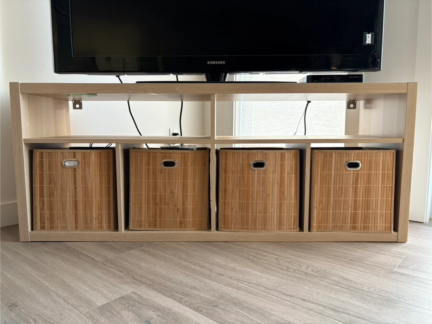 Moving out sale Selling a TV stand that four storage. No storage boxes. Few months old. No damage.