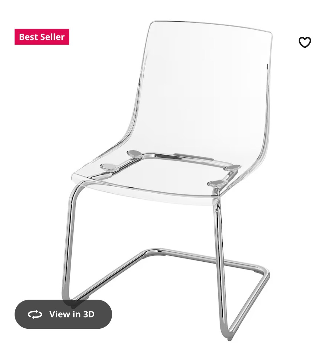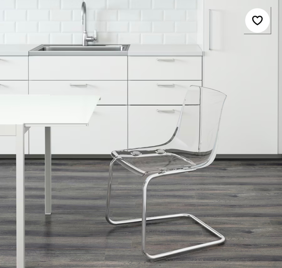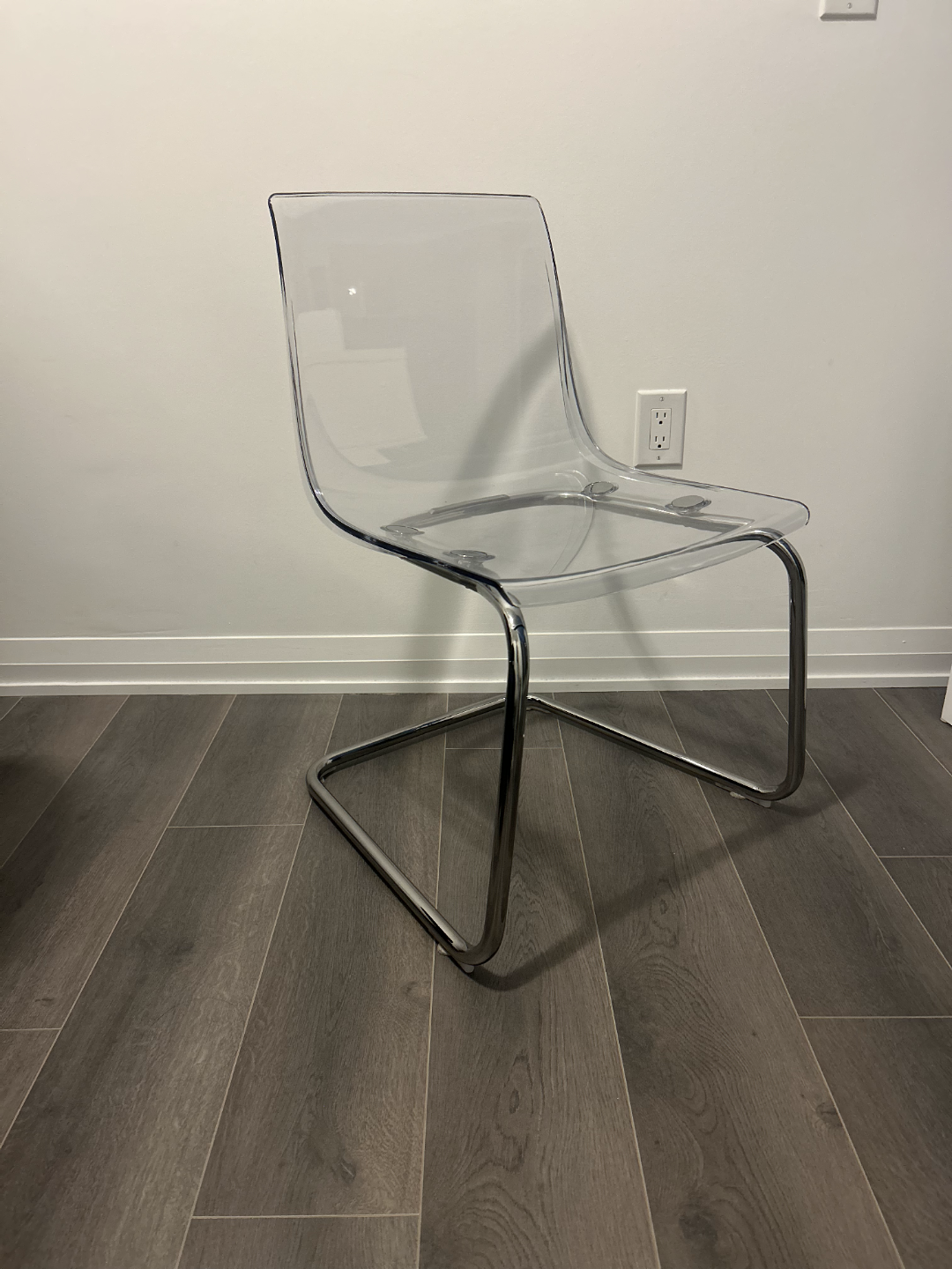 1 / 41 / 4Buy & SellIKEA Transparent Acrylic Chair with Chrome LegsIKEA Transparent Acrylic Chair with Chrome Legs$80Modern design. Clear acrylic seat and back. Sleek chrome legs. Stylish and space-saving. Dimensions in images.ConditionLike newWHERE TO MEETWalmart McNaughtonView MapSELLERverifiedJustinMaple620 reviews1 chats·1 favorites·62 viewsSEND CHAT TO SELLERHi Justin! I’m interested in your listing.Hi Justin! I’m interested in your listing.Get the Karrot app to chatSign In to chat