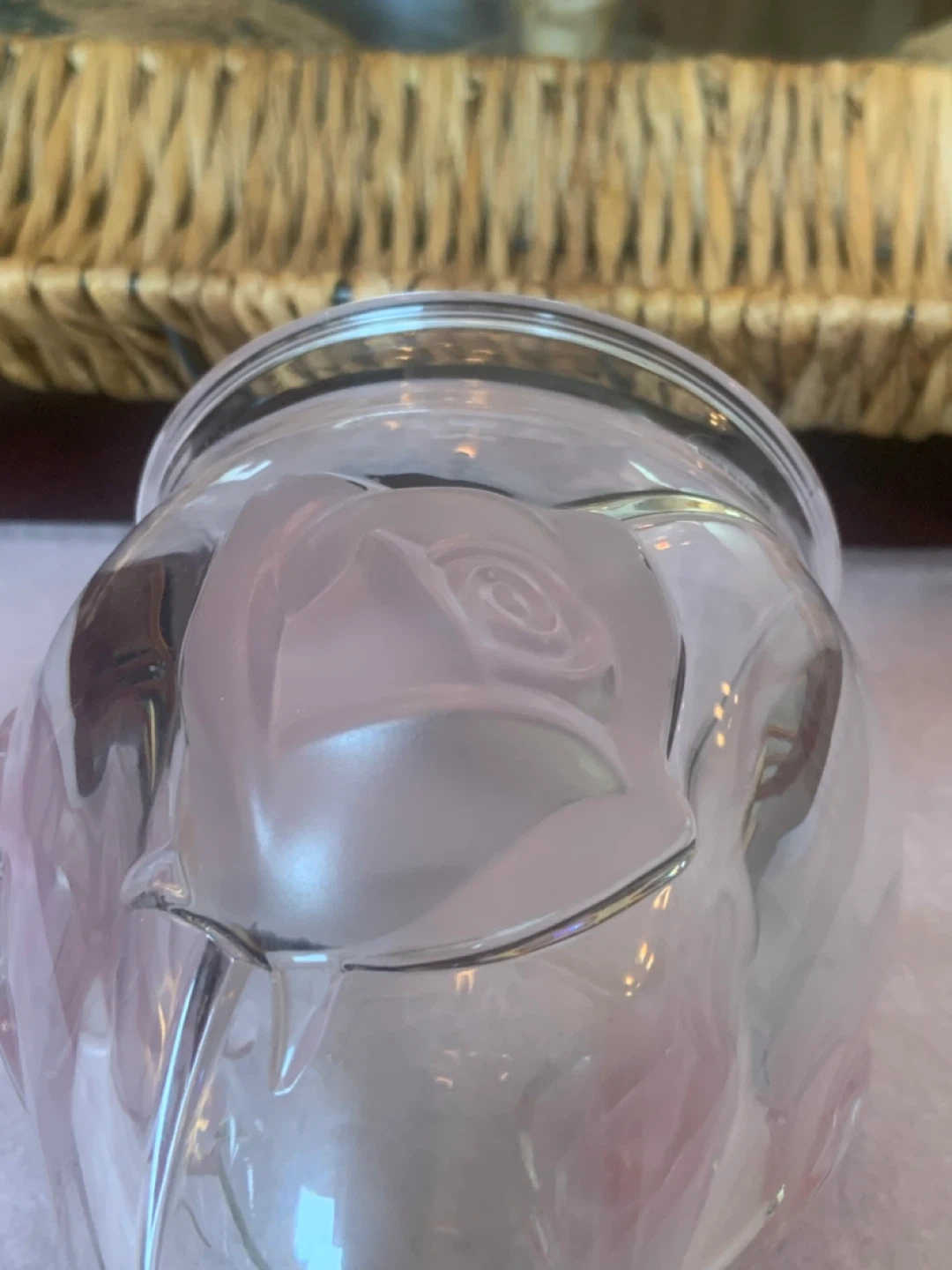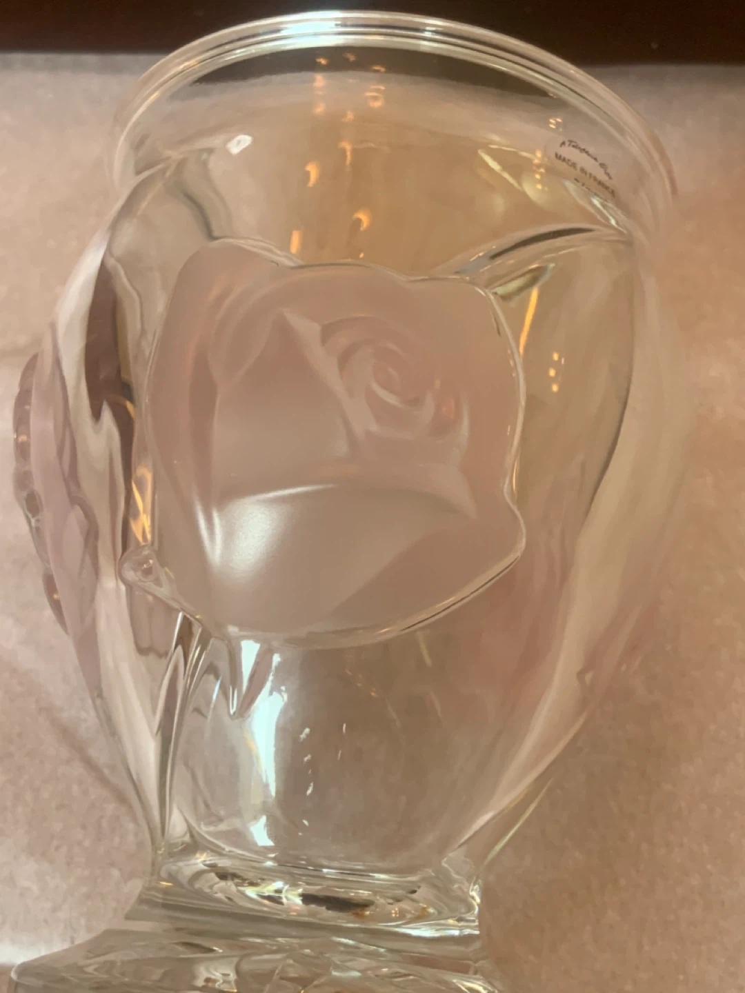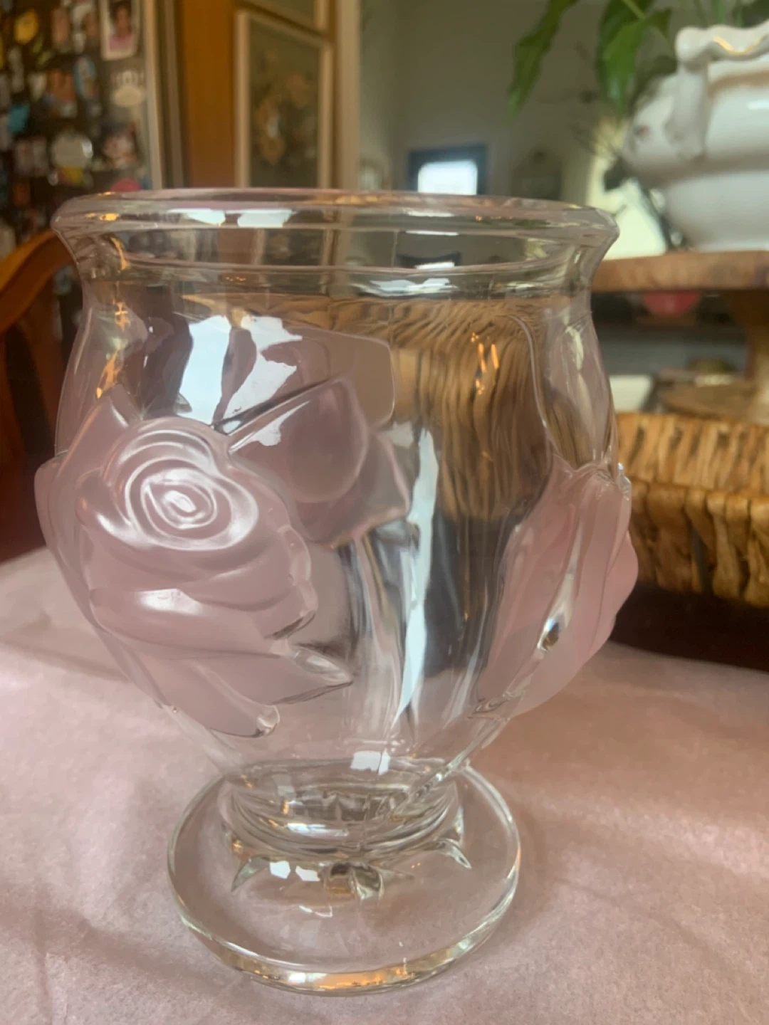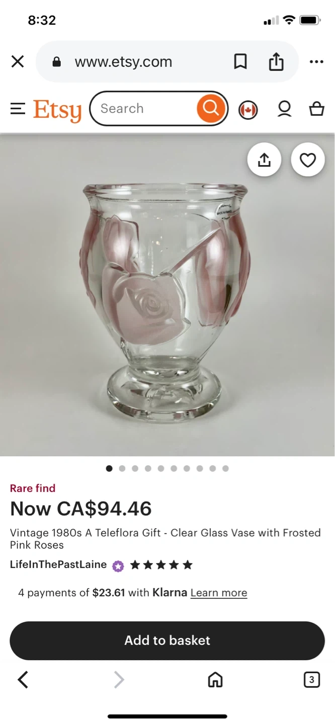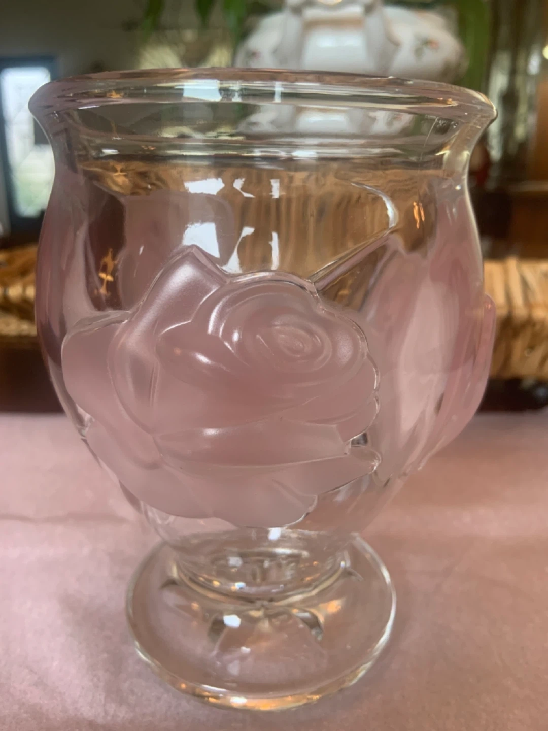 • Main Intersections are HURONTARIO•STEELES just before downtown Brampton • GREAT WEDDING GIFT • Belonged to my Mom during her travels • Sat in her China Cabinet • Purchased in France • 1980’s Vintage Rare • TELEFLORA GIFT • Clear Glass Vase/Vose • SIZE• 6’ inches ( Height ) 4’ inches ( Width• Opening ) • 3 Raised Pink Roses • Heavy Clear Glass • Selling for $50 cash only • Peel Village Area