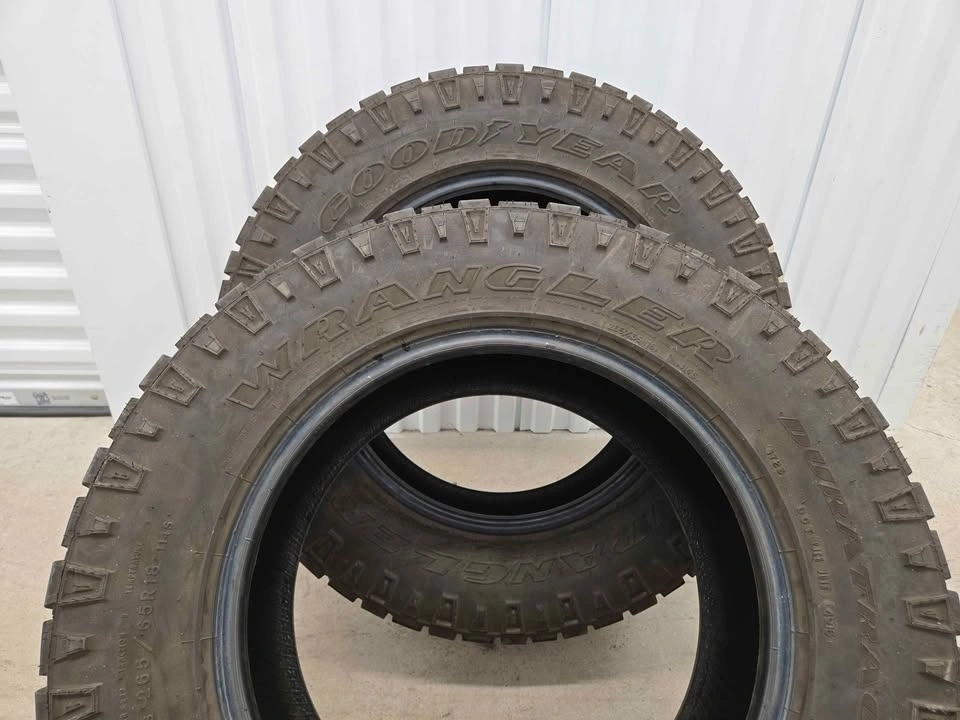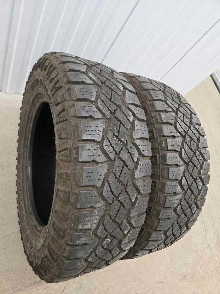 Two Goodyear Wrangler Duratrac tires, size 265/65R18. They are in great condition with full treads. A good option if you need a pair. Asking $275 for both.