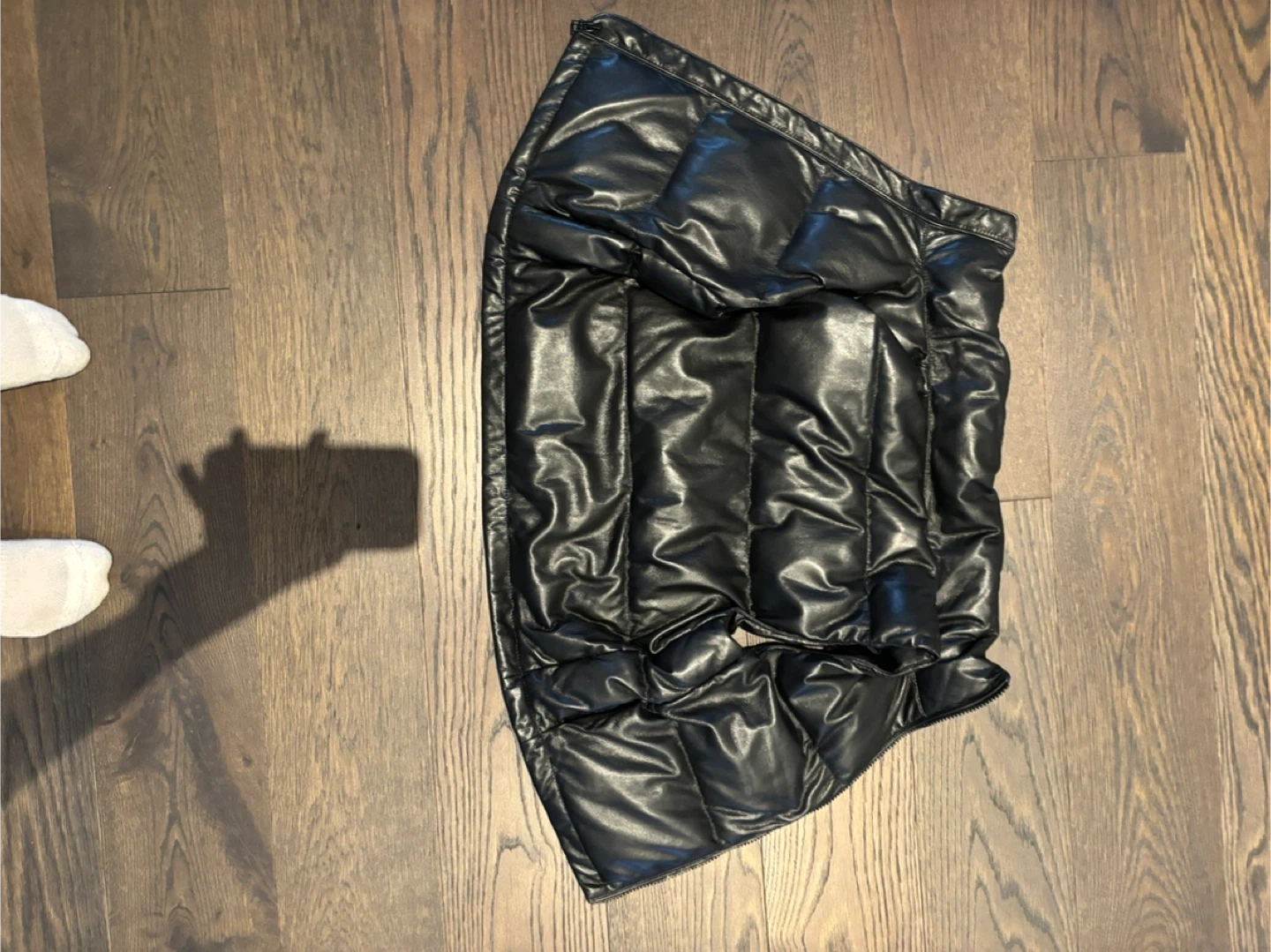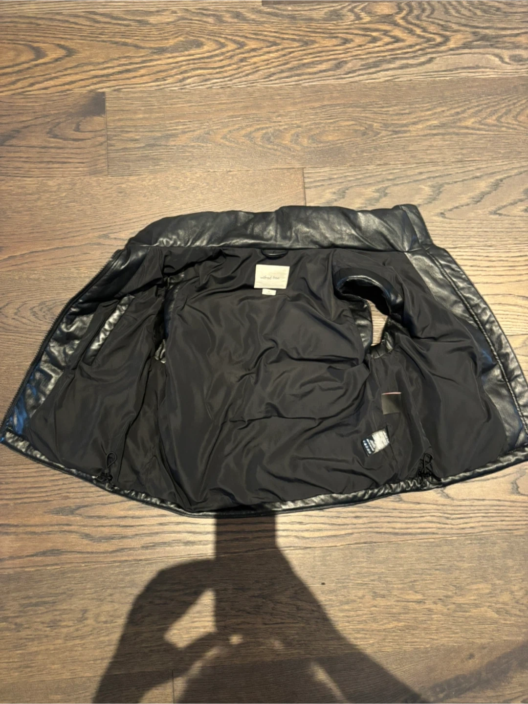 Selling a gently used Aritzia vegan leather puffer vest in black. It's in great condition and perfect for layering during the cooler months. A stylish and comfortable addition to any wardrobe!
