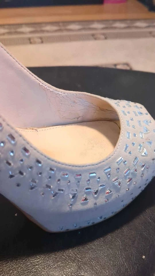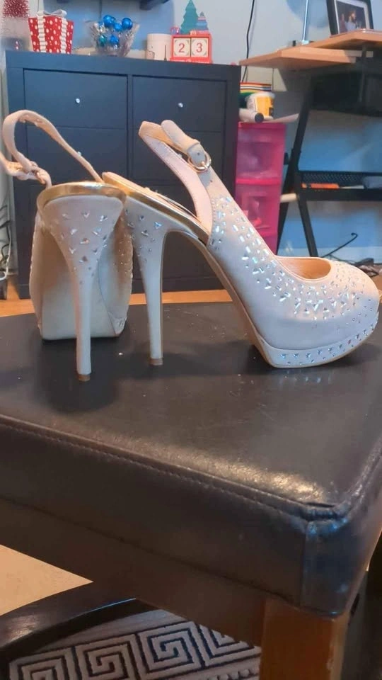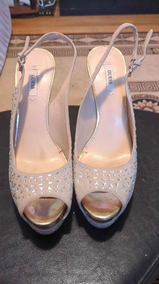Women's size 39 high heels from Guess. In decent condition, some mild wear on the inside as shown in the last photo. Pale pink color. 5.5" heel height.