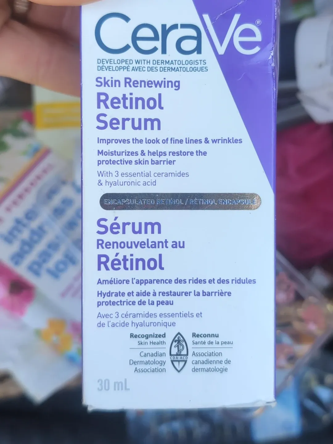 CeraVe Skin Renewing Retinol Serum improves the look of fine lines & wrinkles. It moisturizes and helps restore the protective skin barrier with 3 essential ceramides & hyaluronic acid. 30 mL bottle.