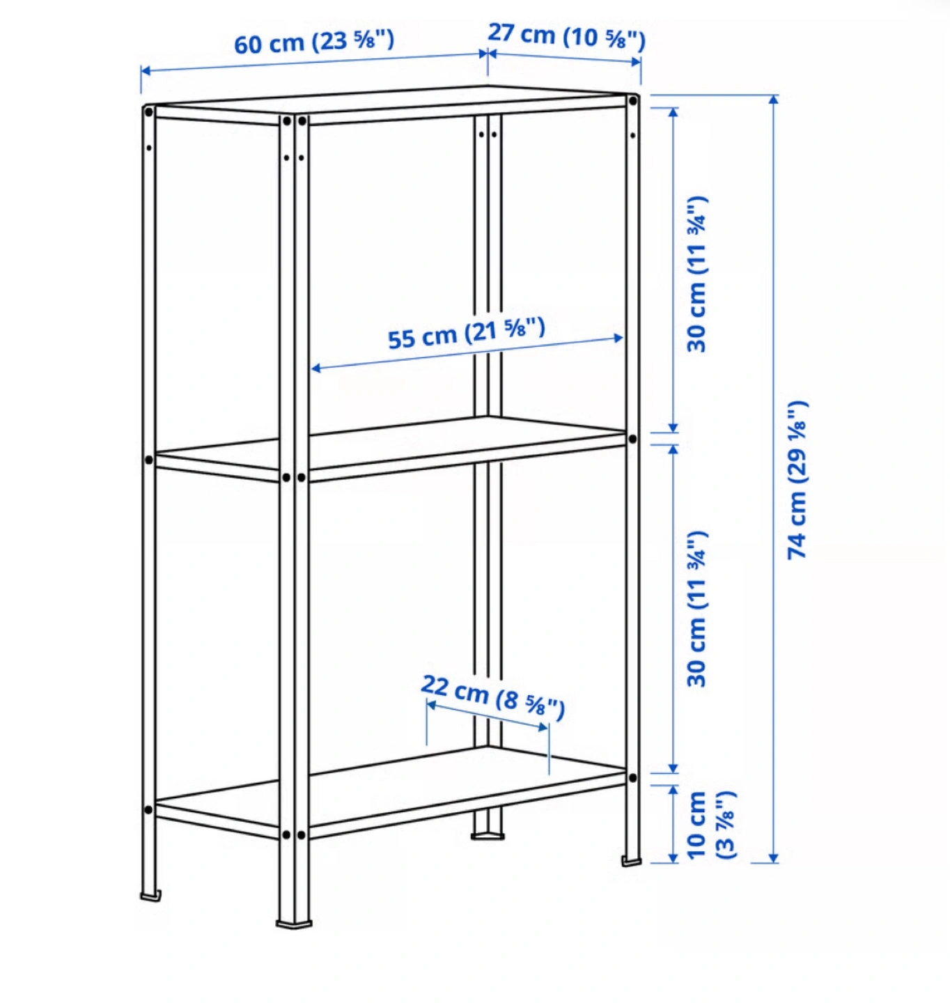 - Size: 60 cm (23 5/8") x 27 cm (10 5/8") x 74 cm (29 1/8")