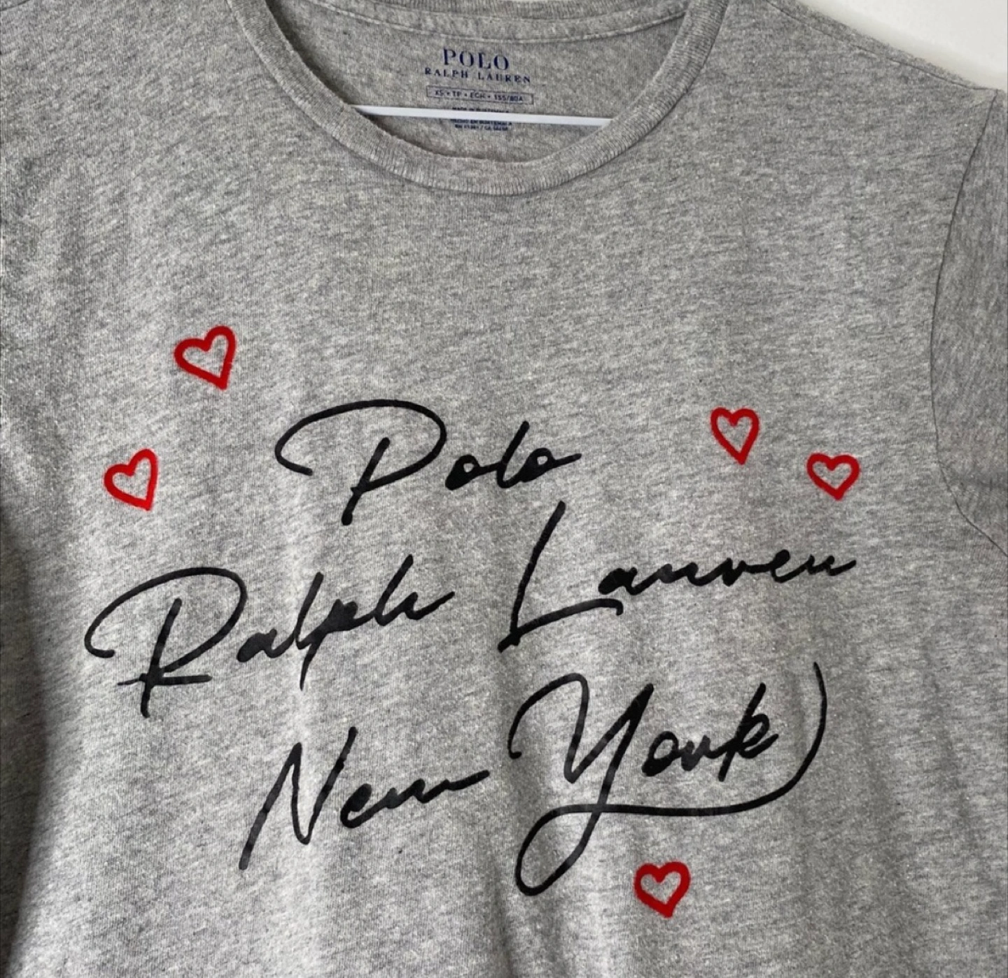 Polo by Ralph Lauren Grey Hearts Logo Tee Size XS.