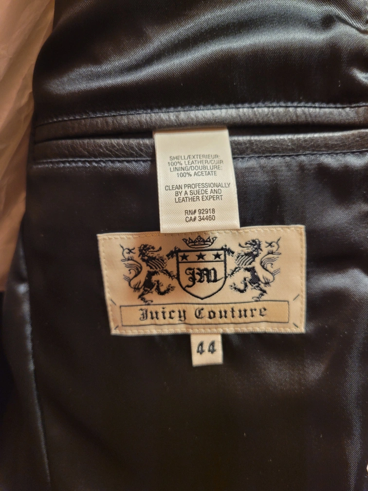 Selling a Juicy Couture distressed leather blazer in size 44. The shell is 100% leather.