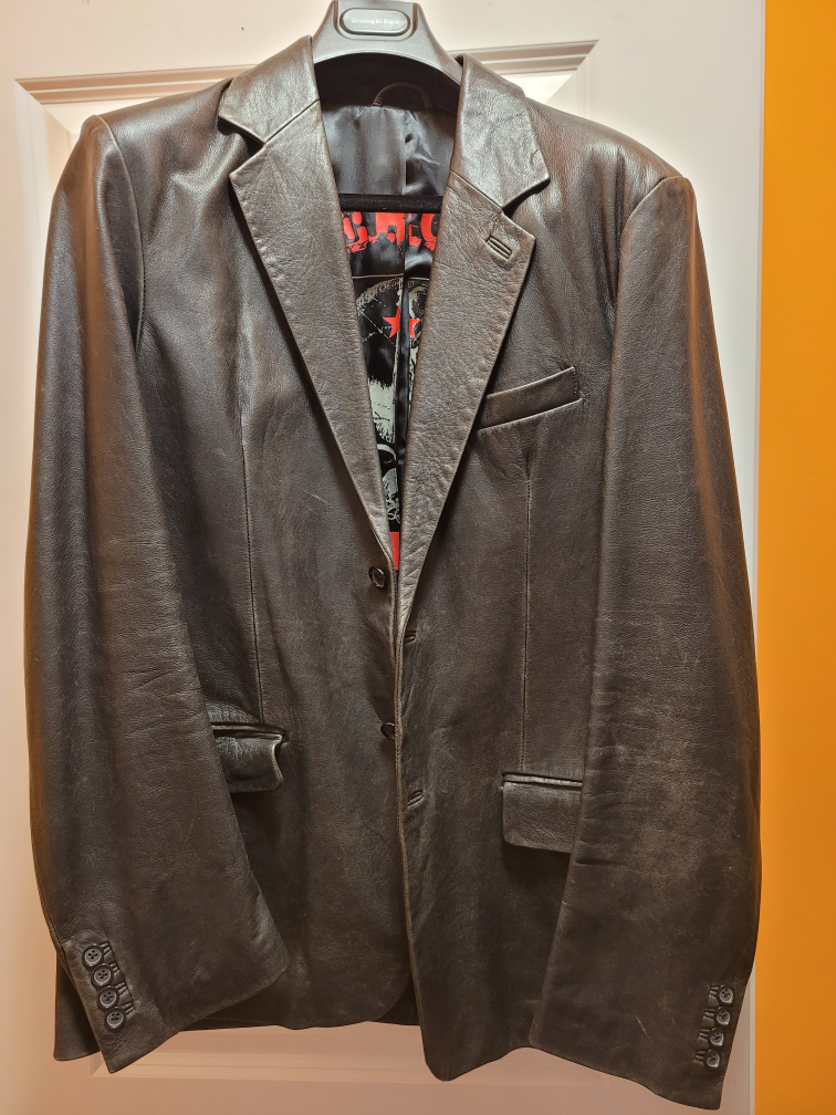 Selling a Juicy Couture distressed leather blazer in size 44. The shell is 100% leather.
